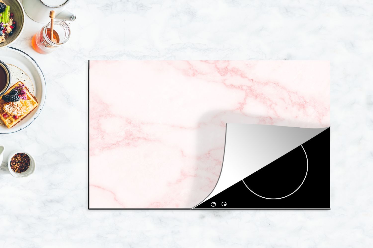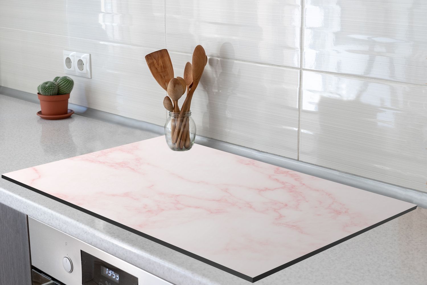 Herdabdeckplatte - 85x52 cm - Marmor - Textur - Rosa - Schick