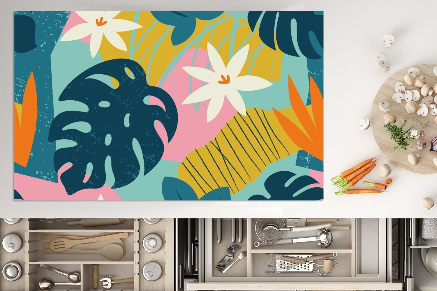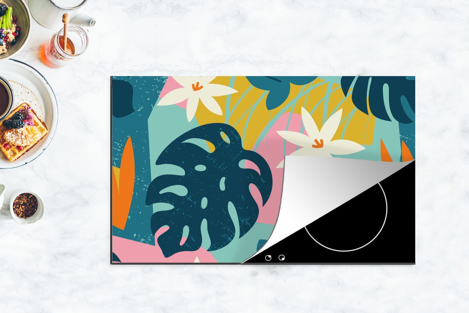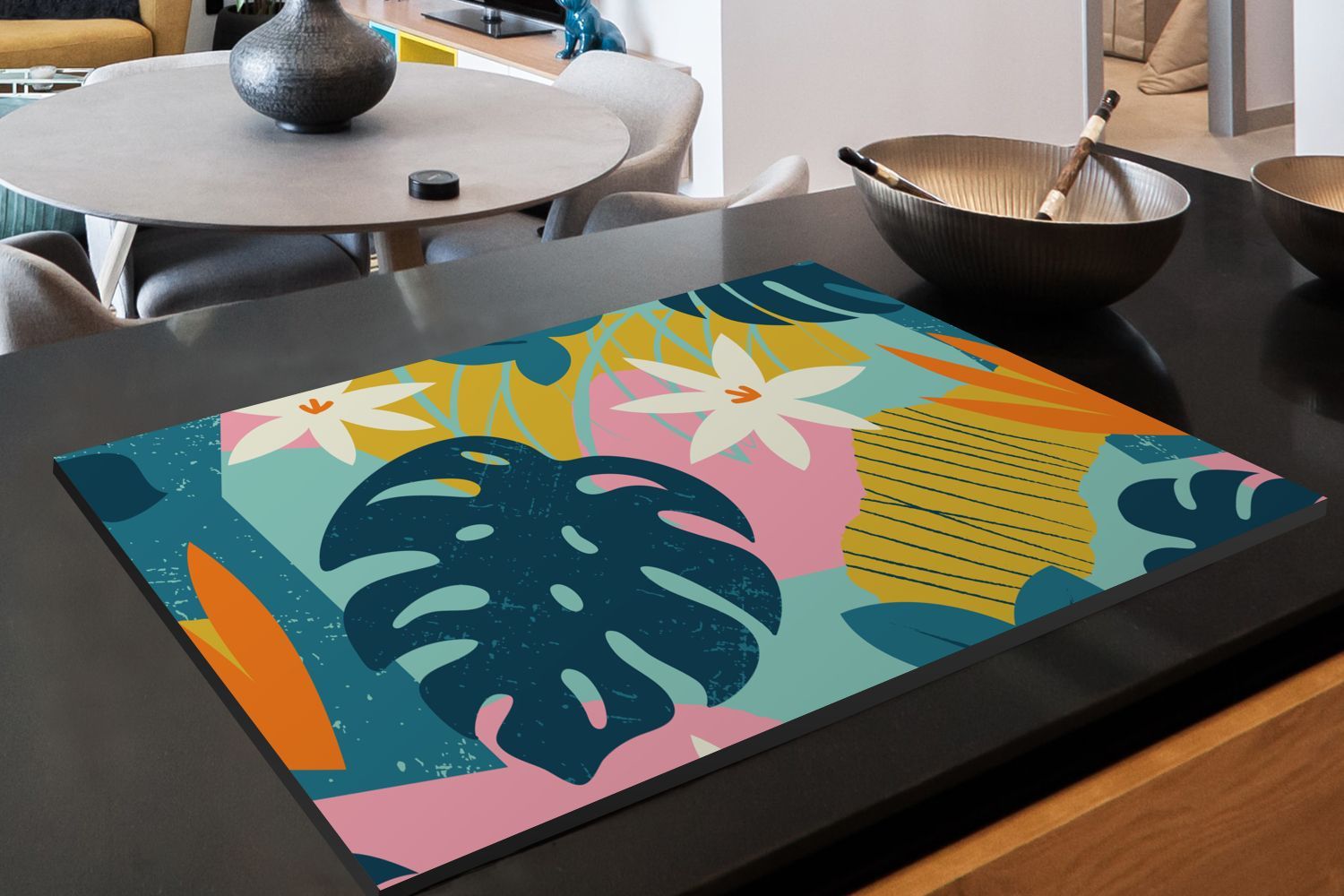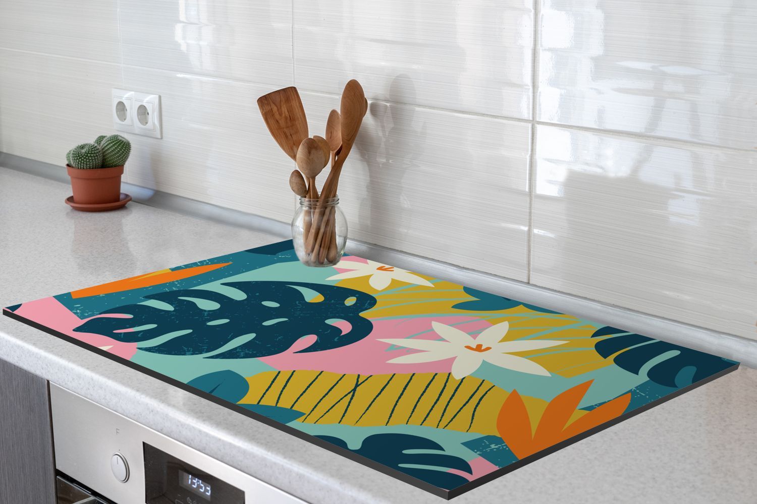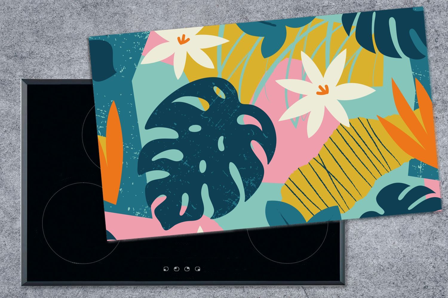 Herdabdeckplatte - 85x52 cm - Muster - Farben - Tropisch