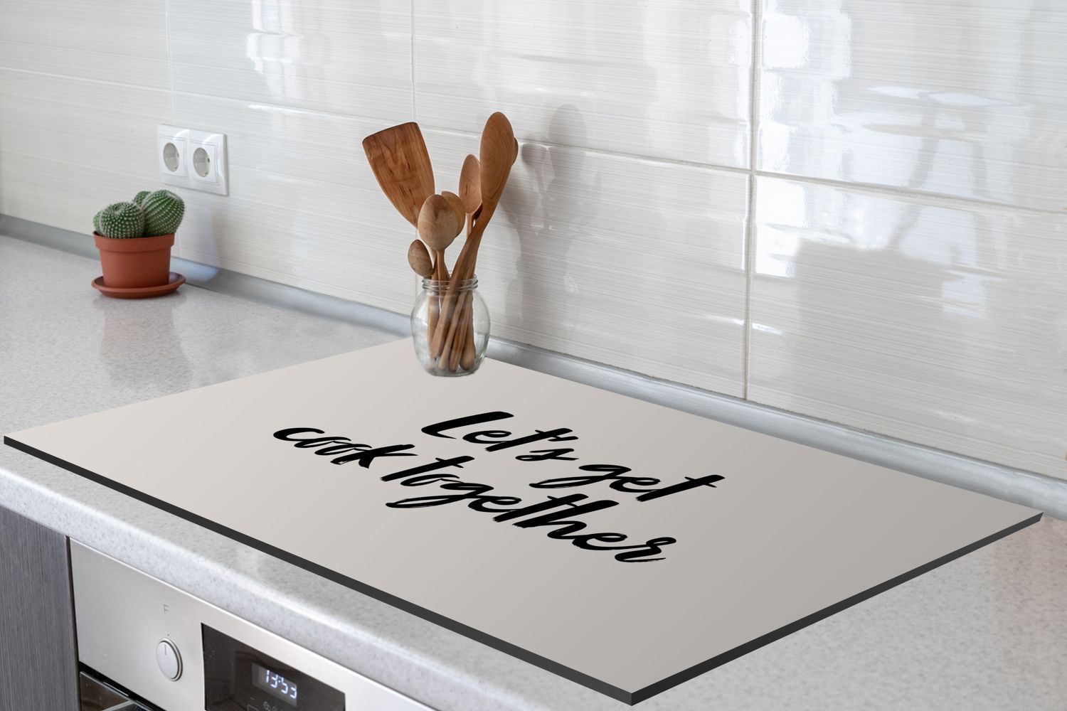 • Herdabdeckplatte 85x52 cm Taupe - Zitat - Und... Backen Sie!