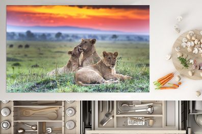 • Herdabdeckplatte - 85x52 cm - Löwen bei Sonnenaufgang