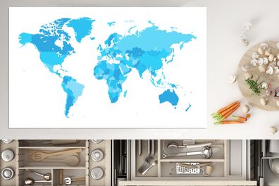 • Herdabdeckplatte - 85x52 cm - Weltkarte - Blau