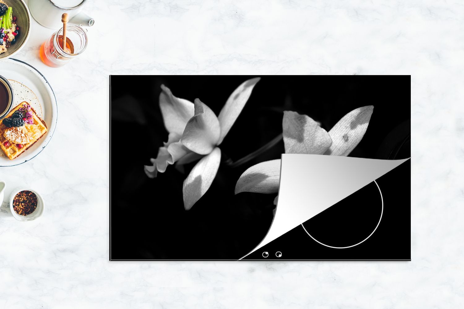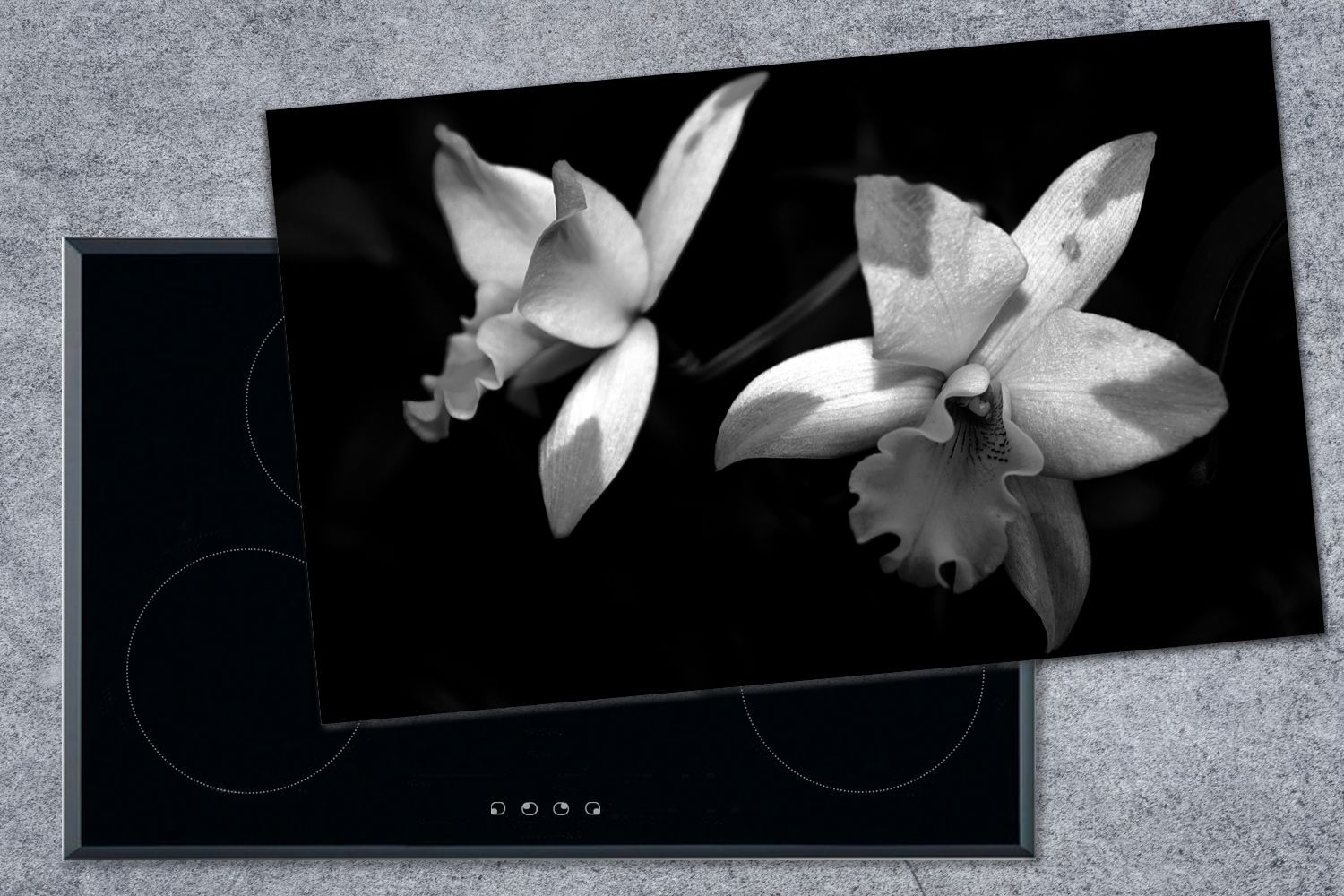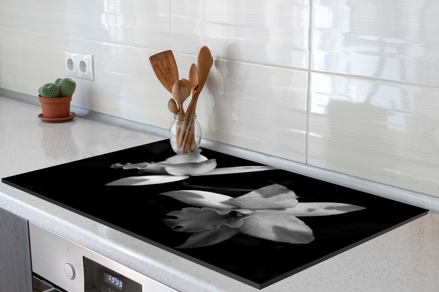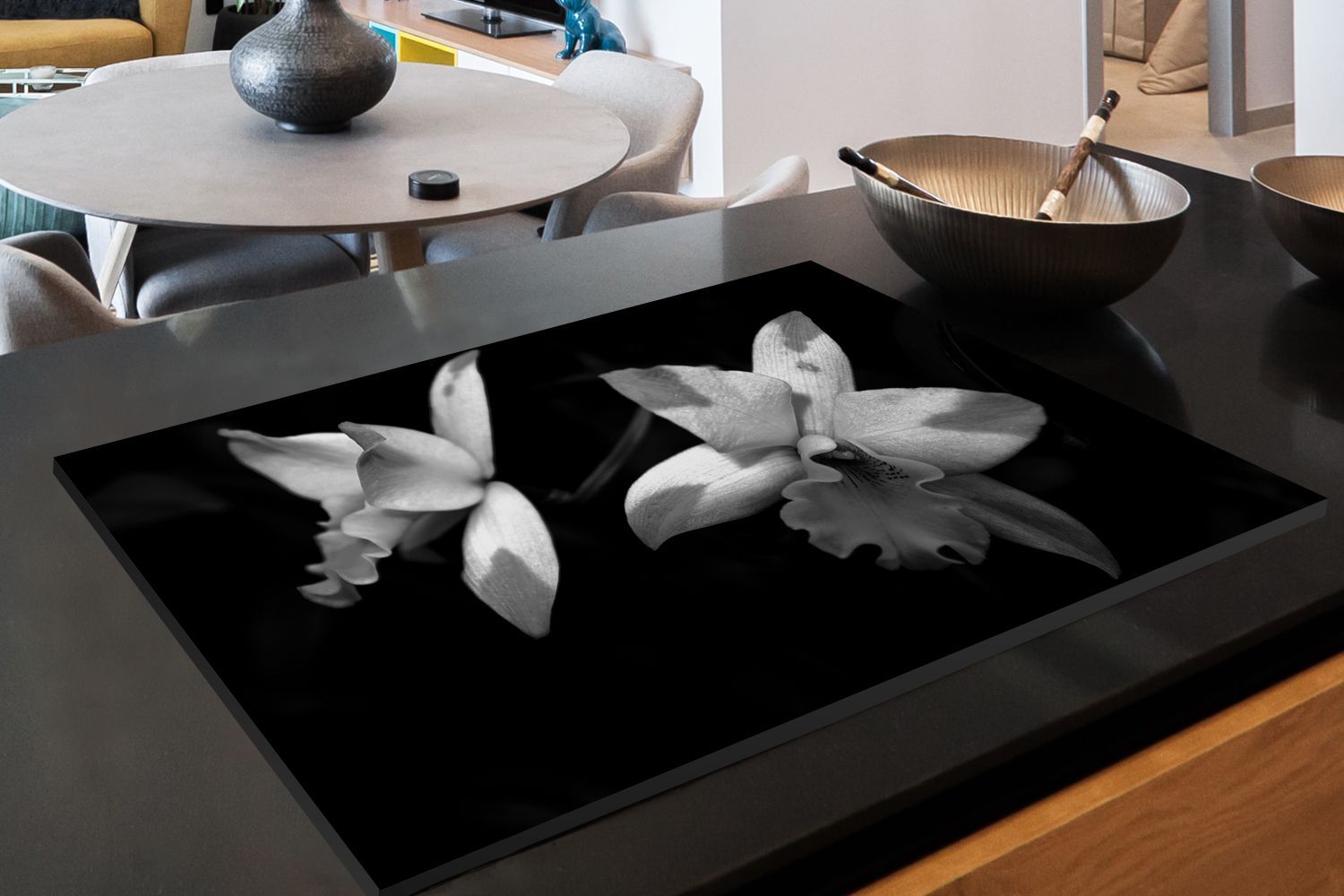 Herdabdeckplatte - 85x52 cm - Zwei Orchideenblüten - schwarz und weiß