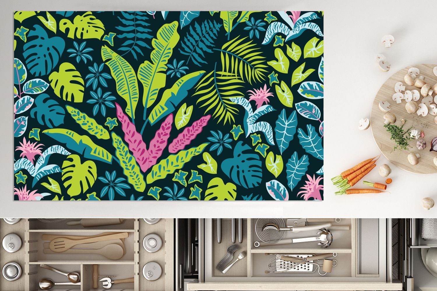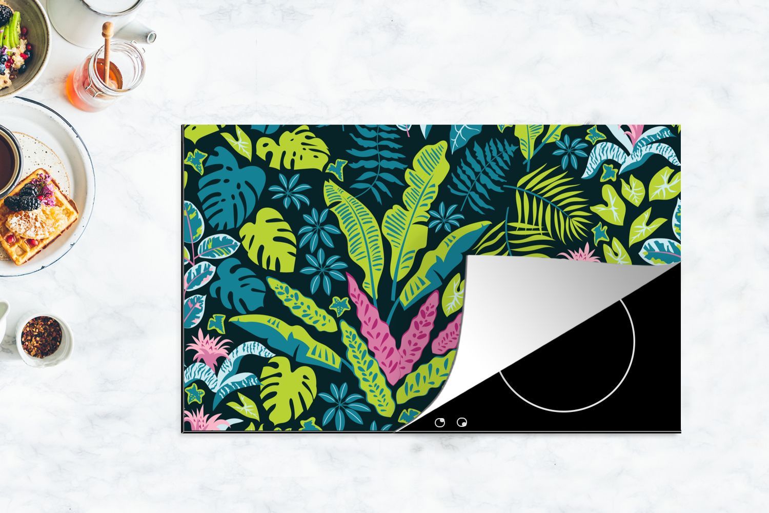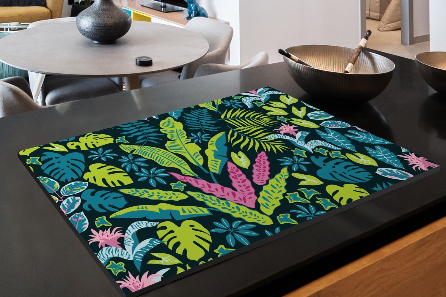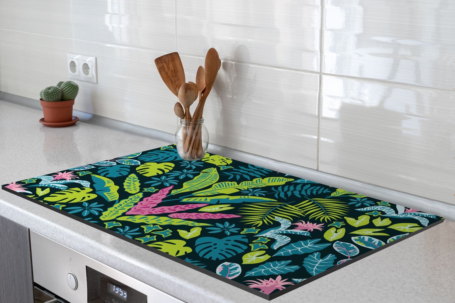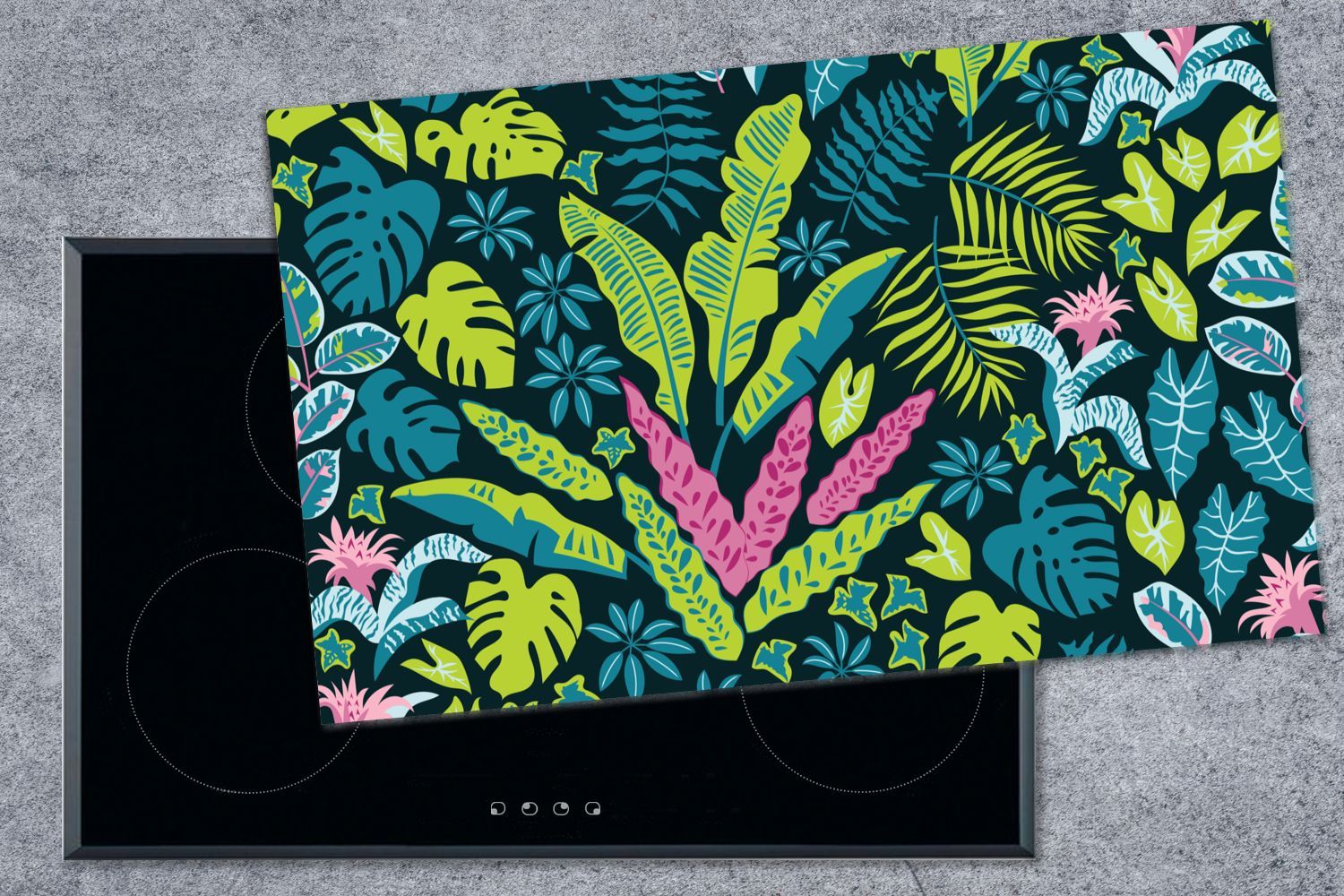 Herdabdeckplatte - 90x52 cm - Pflanzen - Farben - Muster