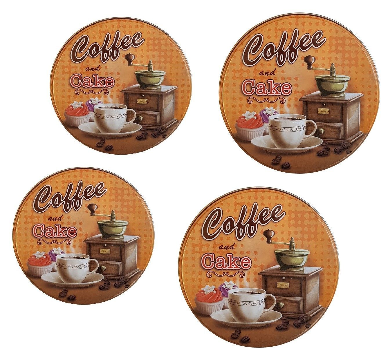Herdabdeckplatten rund 4´er Set Küchen Herd Abdeckplatten Kaffee Coffee Nostalgie
