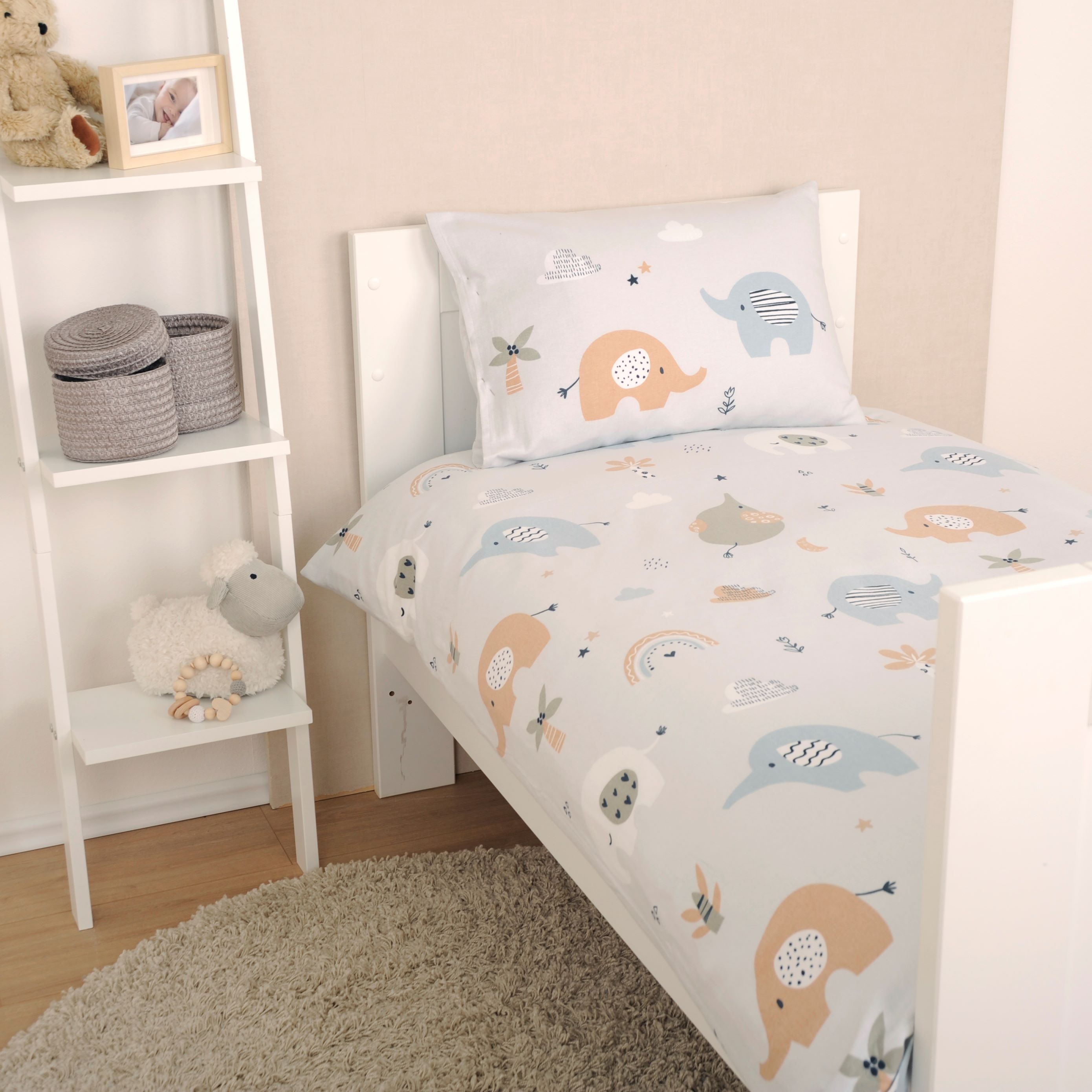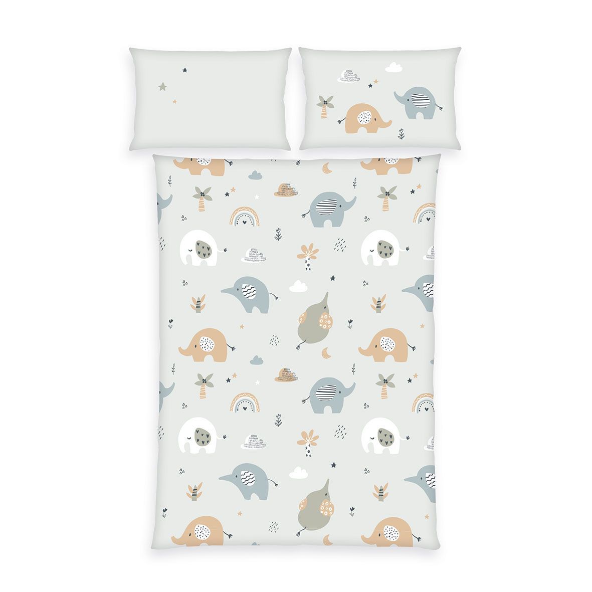 Herding Flanell Baby Kinder Bettwäsche Elephants Elefanten blau 100x135 cm