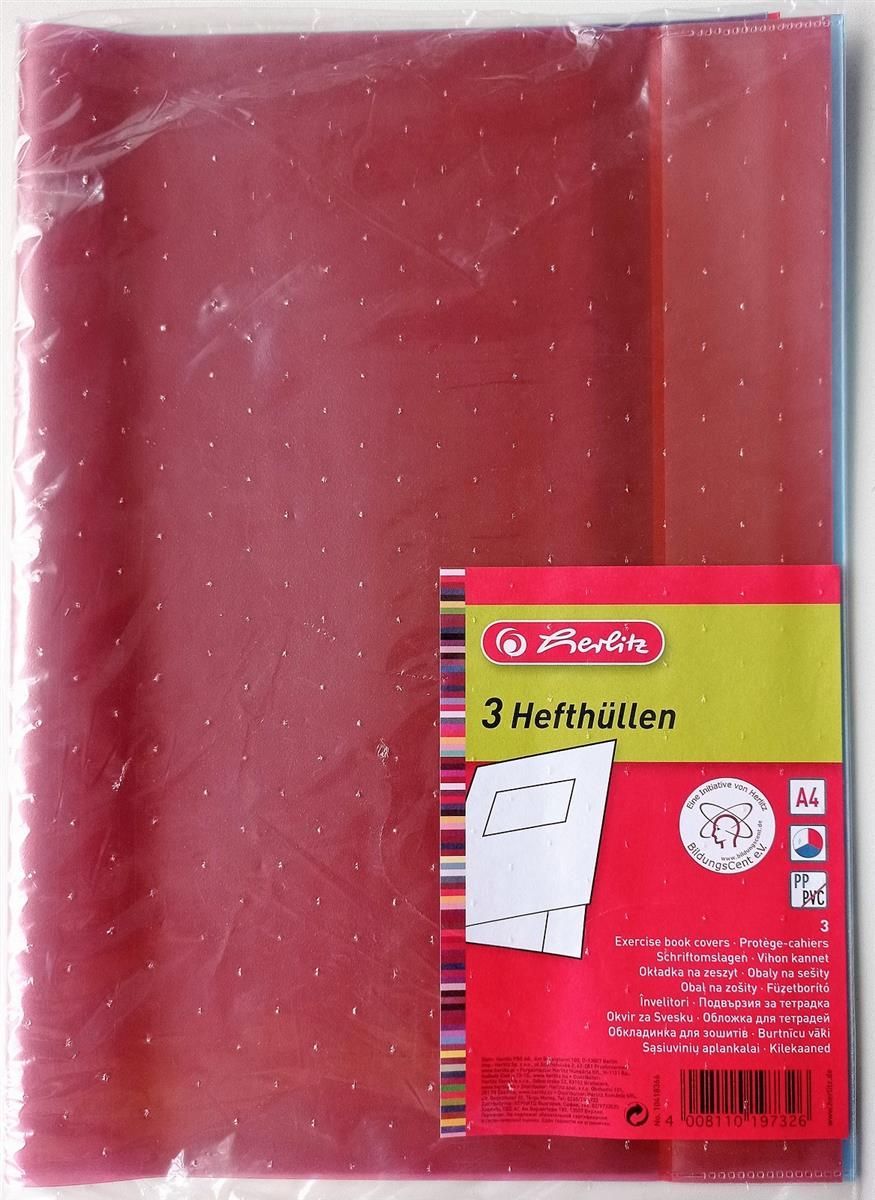Herlitz Herlitz 10418366 Heftumschläge, DIN A4, farbig transparent, 3er Pack