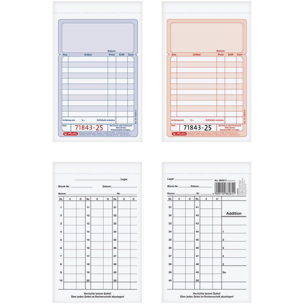 Herlitz herlitz 882613 Formularbuch 2x 50 Blatt Kassenblock mit Additionsblatt, mit fortlaufe