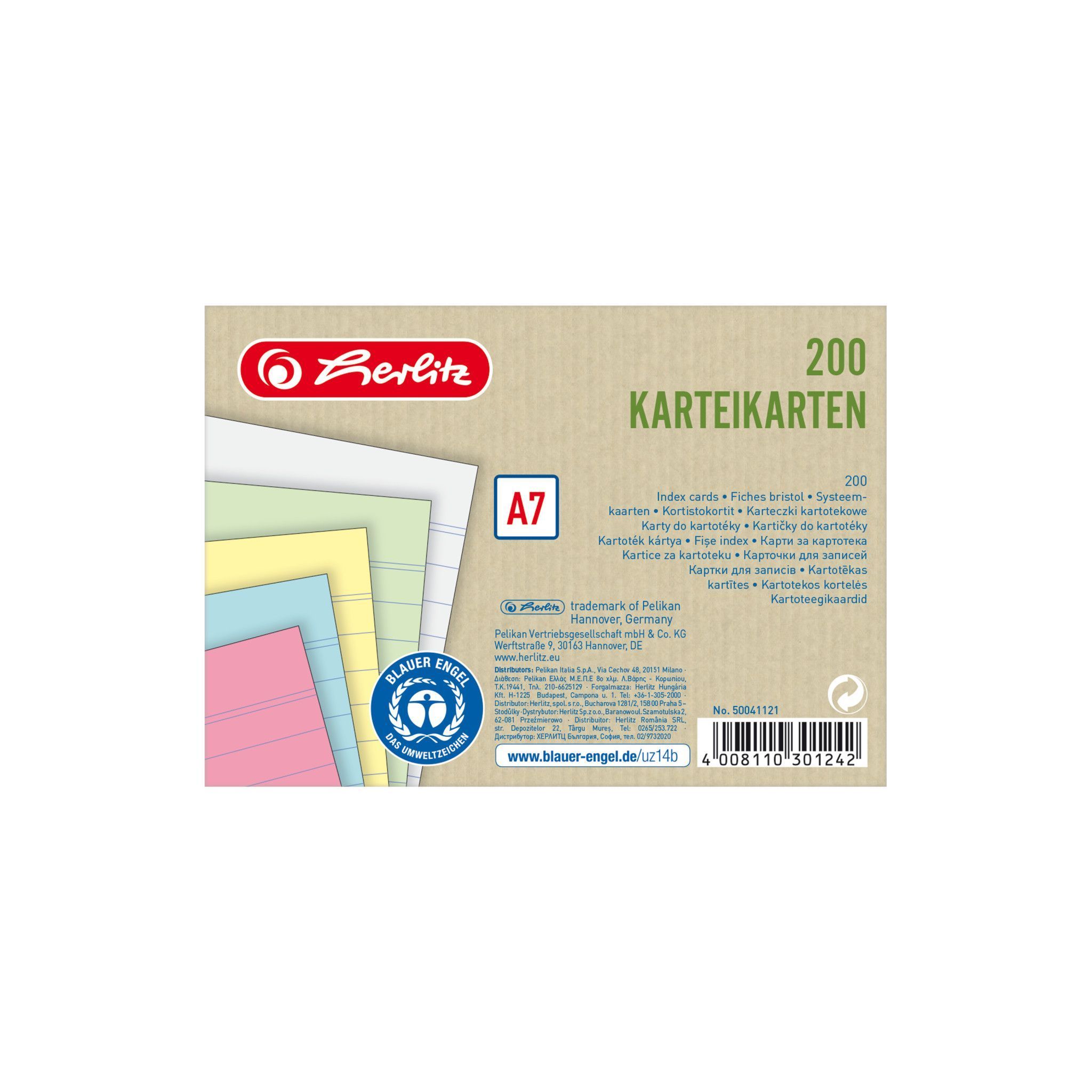 Herlitz Herlitz Karteikarte A7 lin. fs Bl. Engel 200 eingeschweißt (4 Farben + weiß)