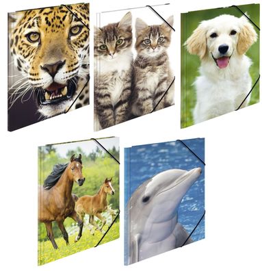 • Herma 19346 Sammelmappe Animals - A4, Karton, mit Gummizug, sortiert