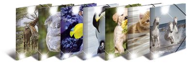 • 10x Herma 7148 Sammelmappe Tiere - A3, PP, mit Gummizug, sortiert