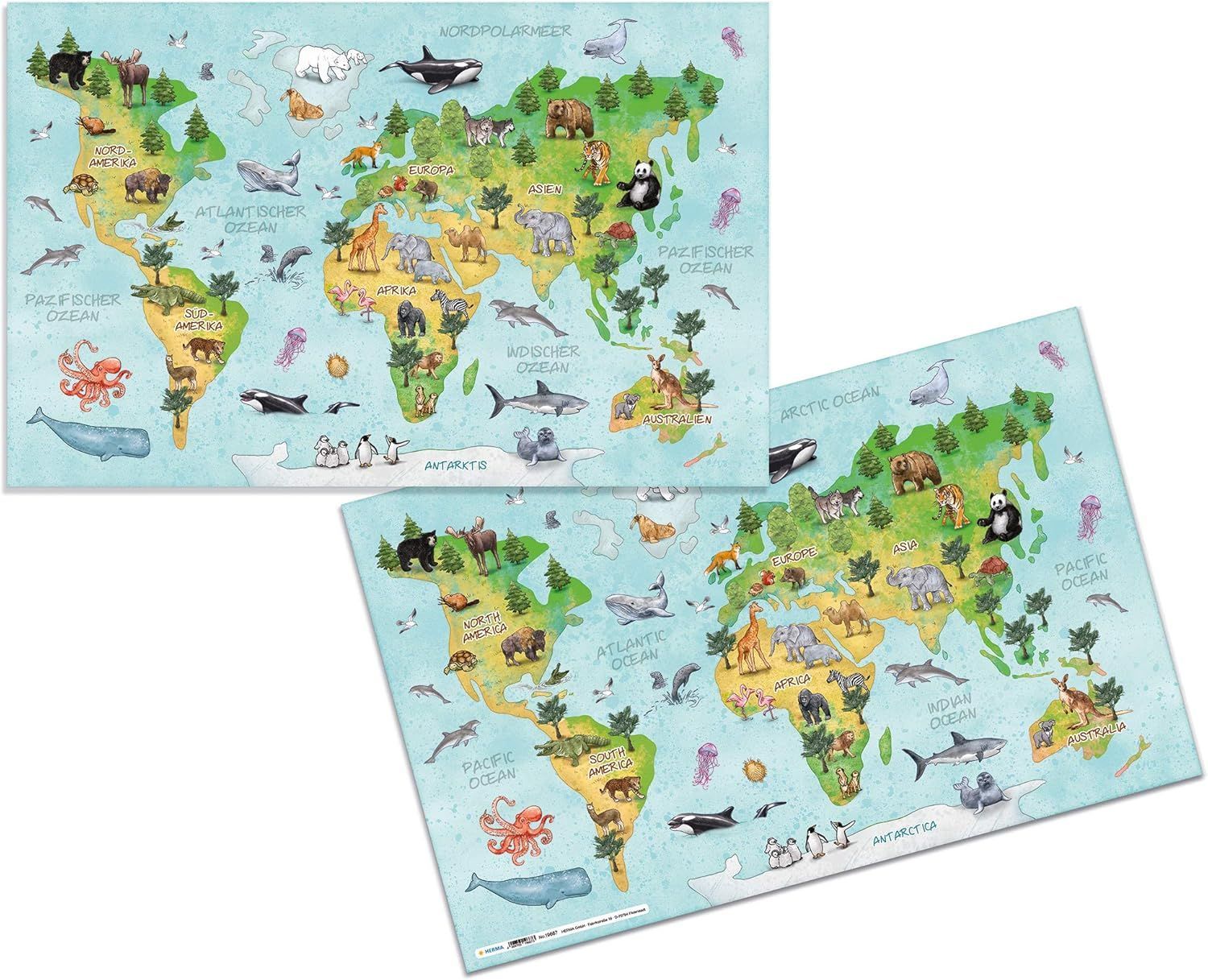 Herma HERMA 19667 Schreibtischunterlage Kindergarten Weltkarte, abwischbare Kinder Schreibu