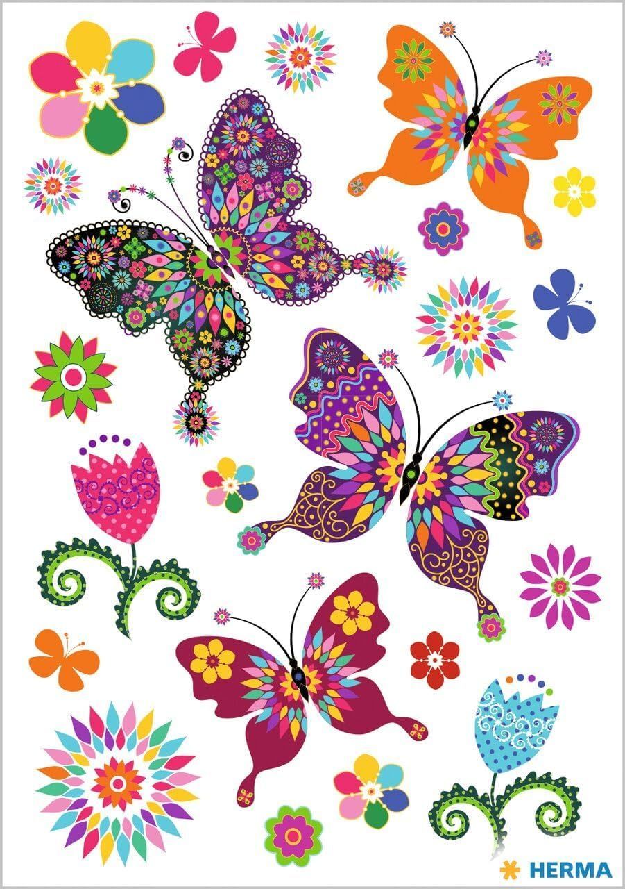Herma HERMA 3174 Aufkleber Schmetterlinge Glitzer klein groß, 22 Stück, Schmetterling Stick