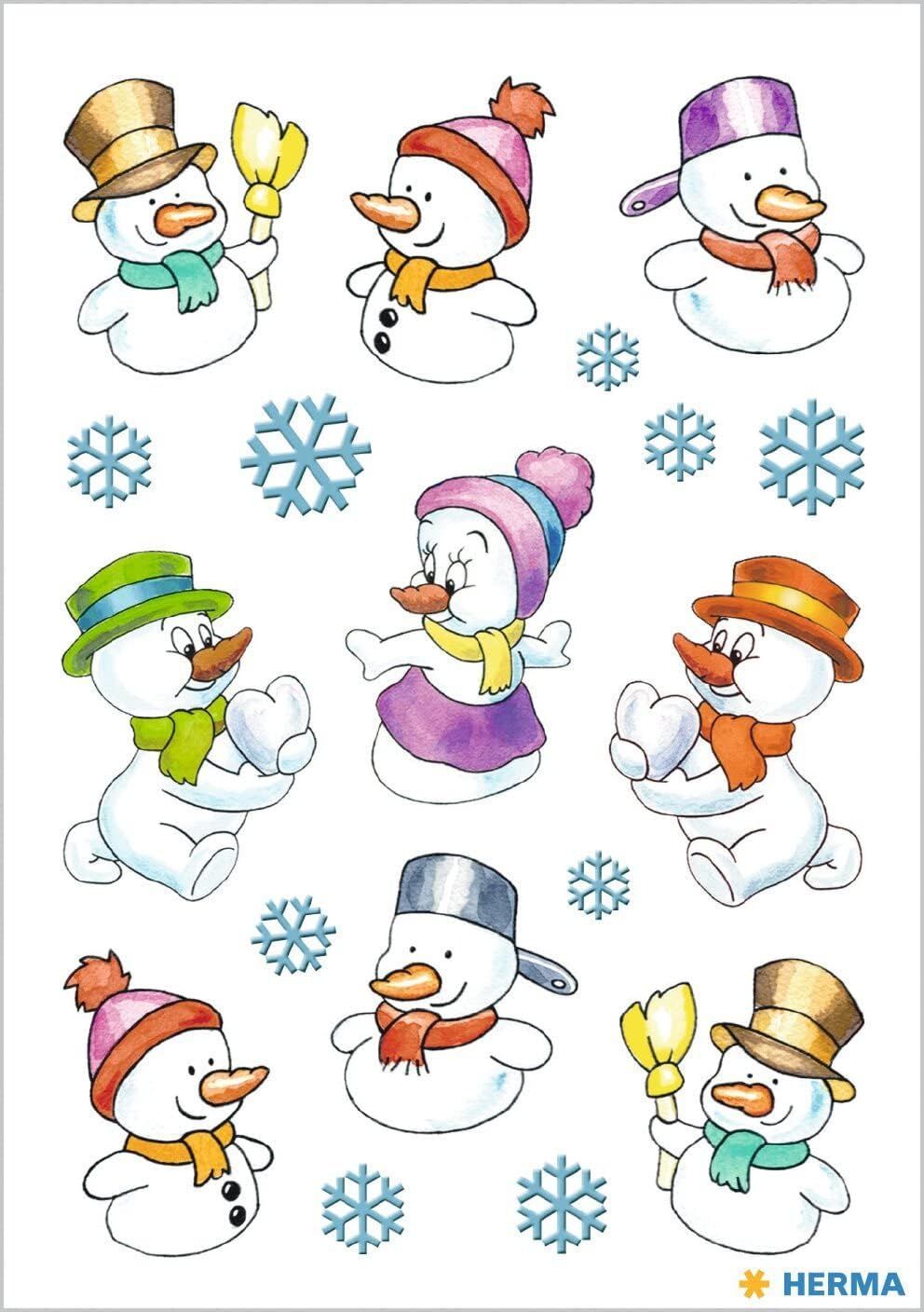 Herma HERMA 3216 Aufkleber Schneemann klein, 27 Stück, Weihnachten Sticker mit Schneeflocke