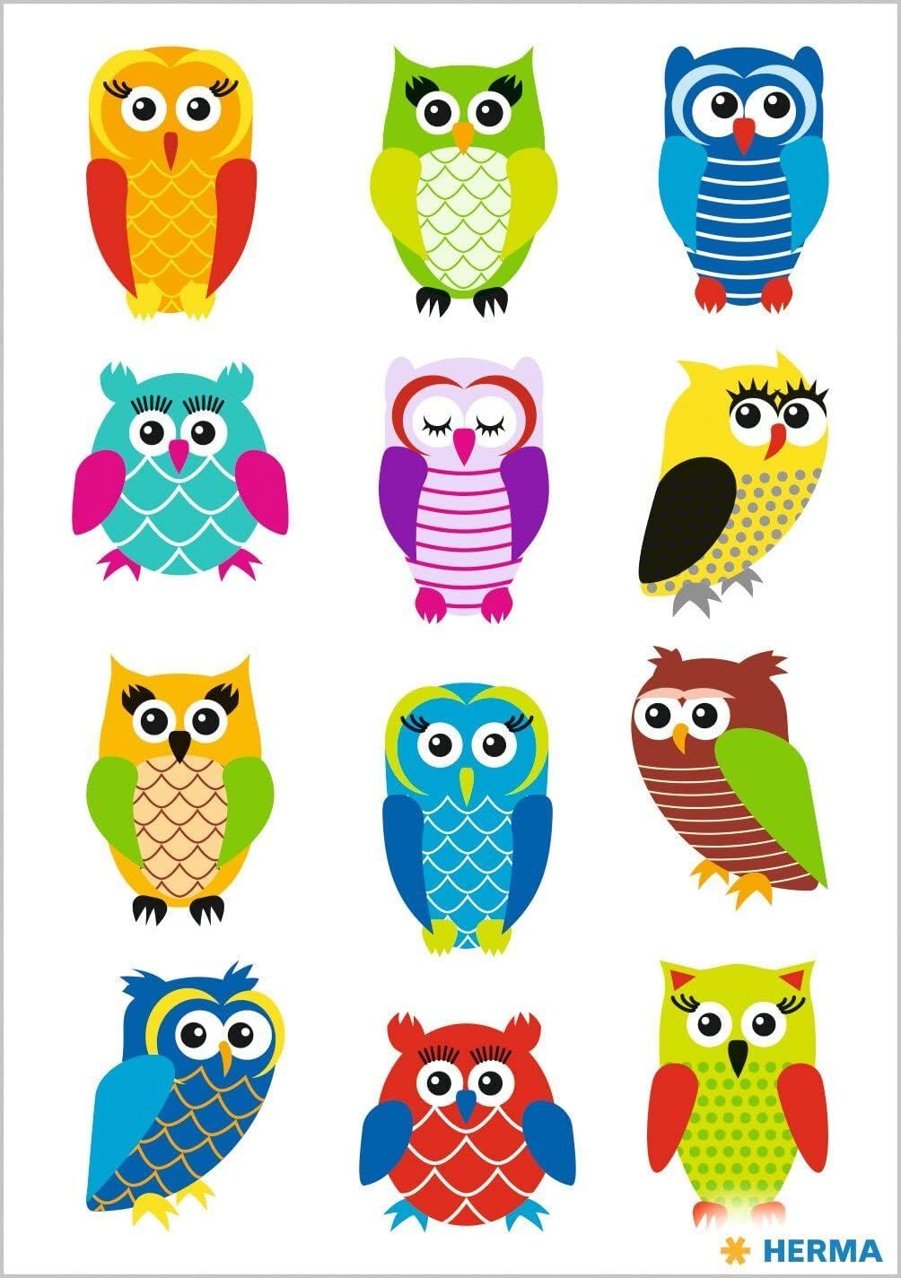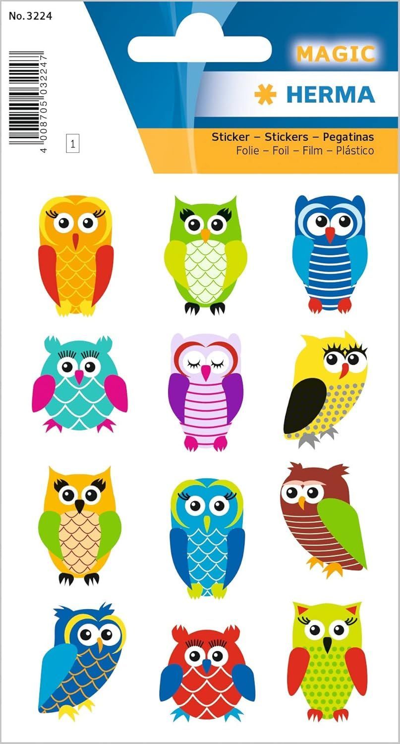 Herma HERMA 3224 Aufkleber Eulen Glitzer klein groß, 12 Stück, Tiere Sticker mit lustigen E