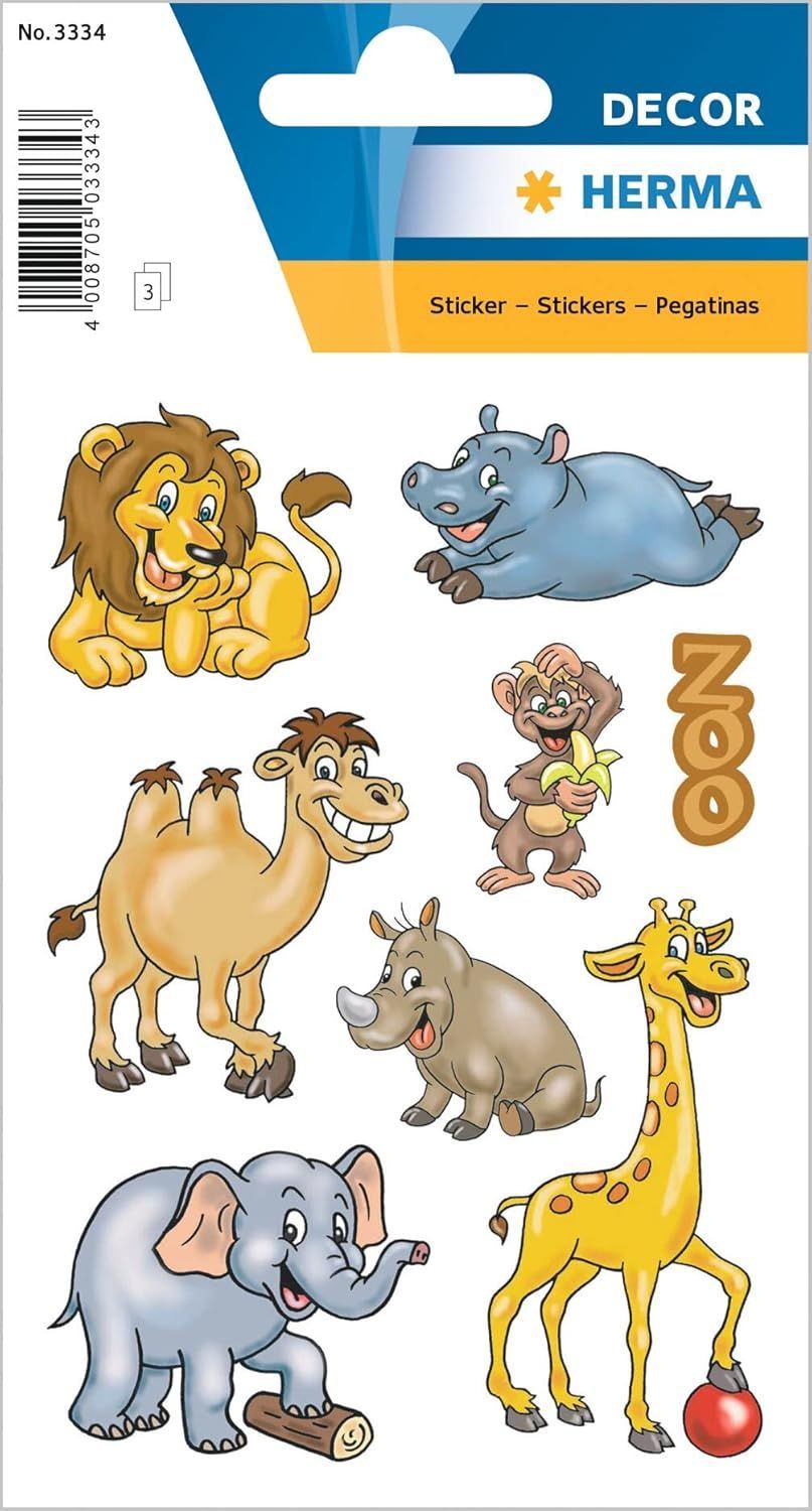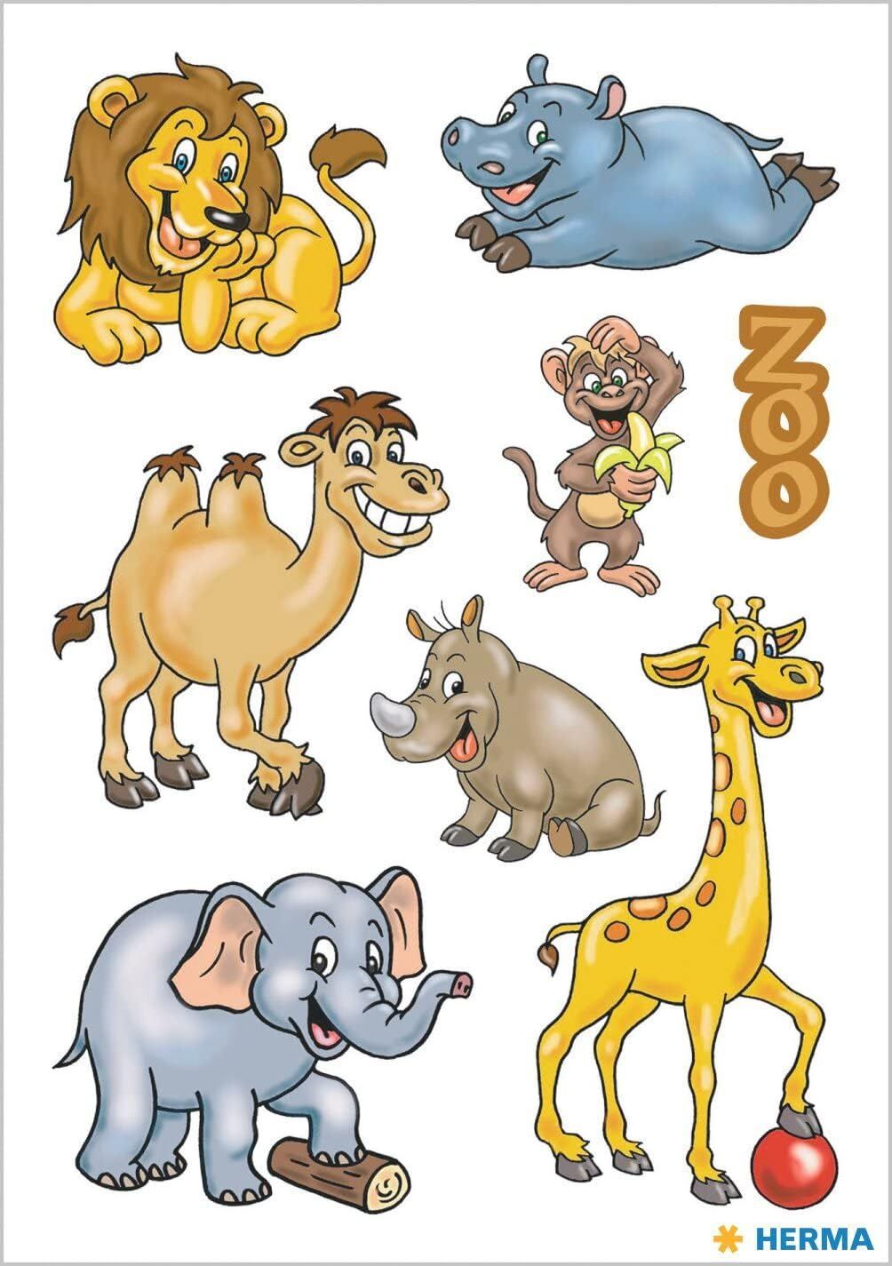 Herma HERMA 3334 Aufkleber Zootiere klein groß, 24 Stück, Tiere Sticker mit Löwe Elefant Gi