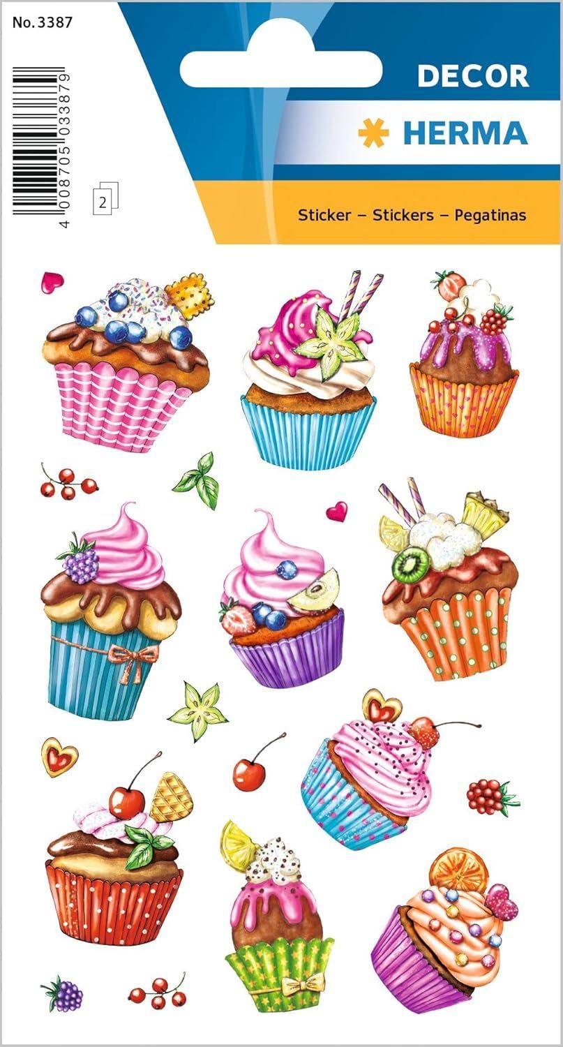Herma HERMA 3387 Aufkleber Cupcakes Glitzer klein groß, 20 Stück, Muffin Sticker mit Törtch