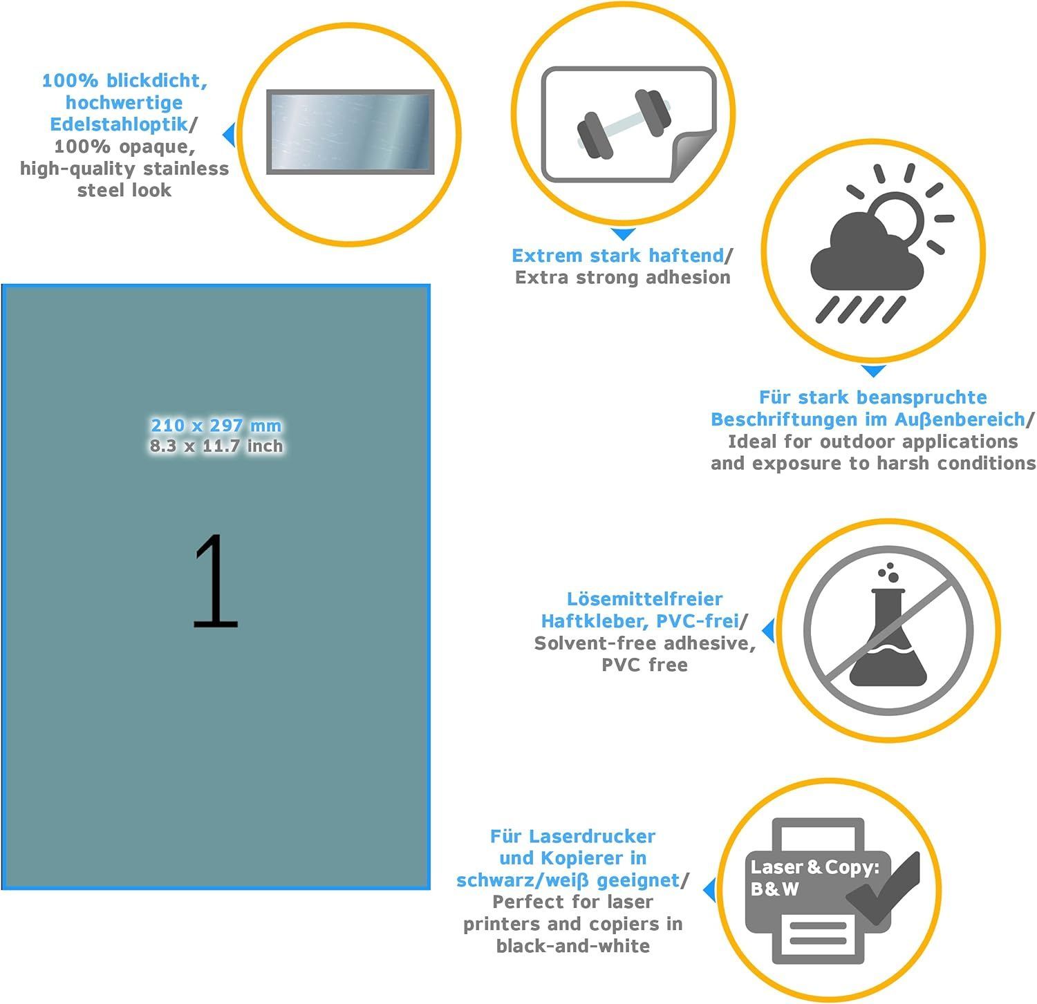 Herma HERMA 4224 Typenschild Folien-Etiketten silber, 25 Blatt, 210 x 297 mm, 1 pro A4 Boge