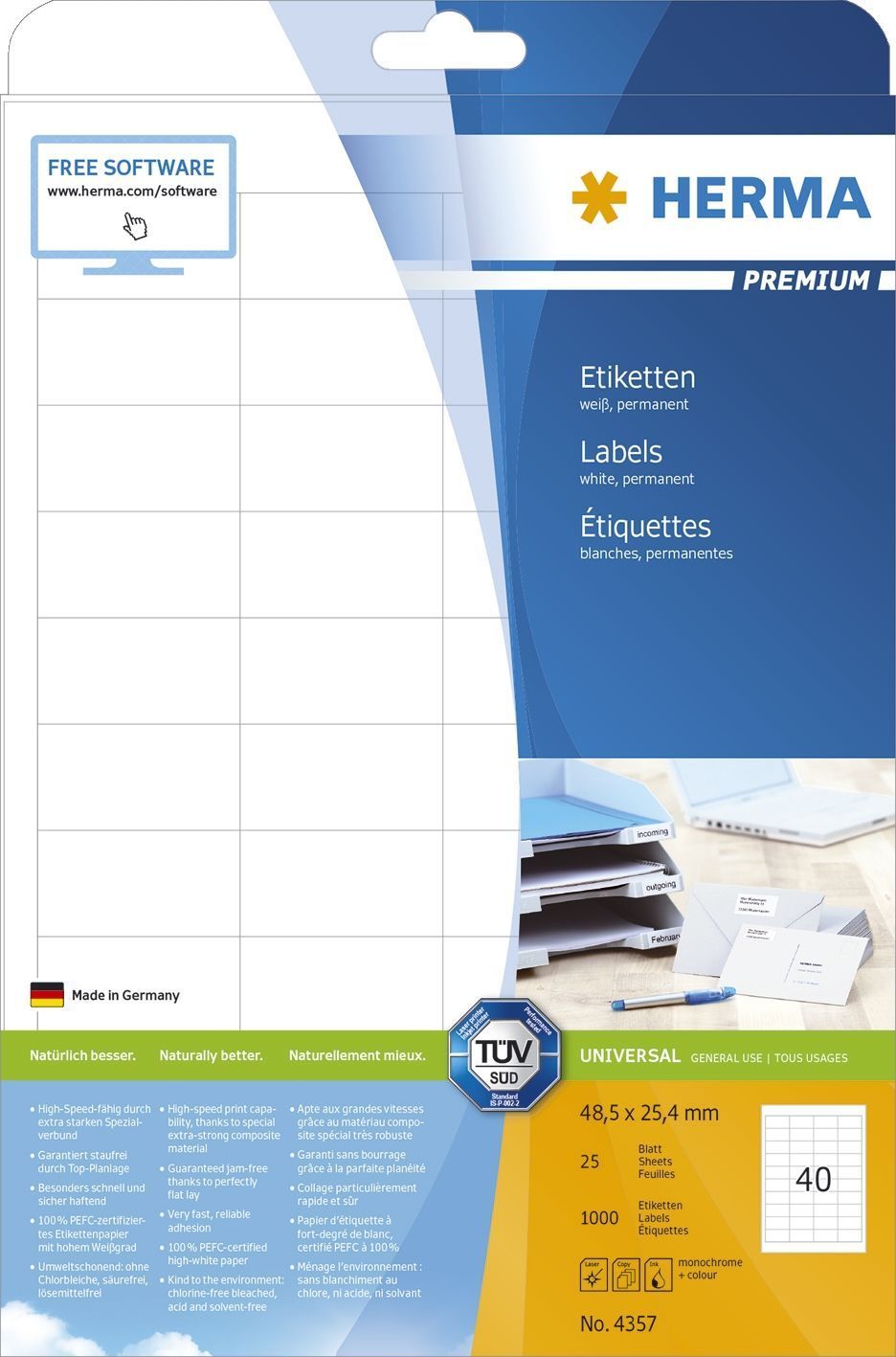 Etiketten Herma Premium Weiß 48,3 x 25,4 mm