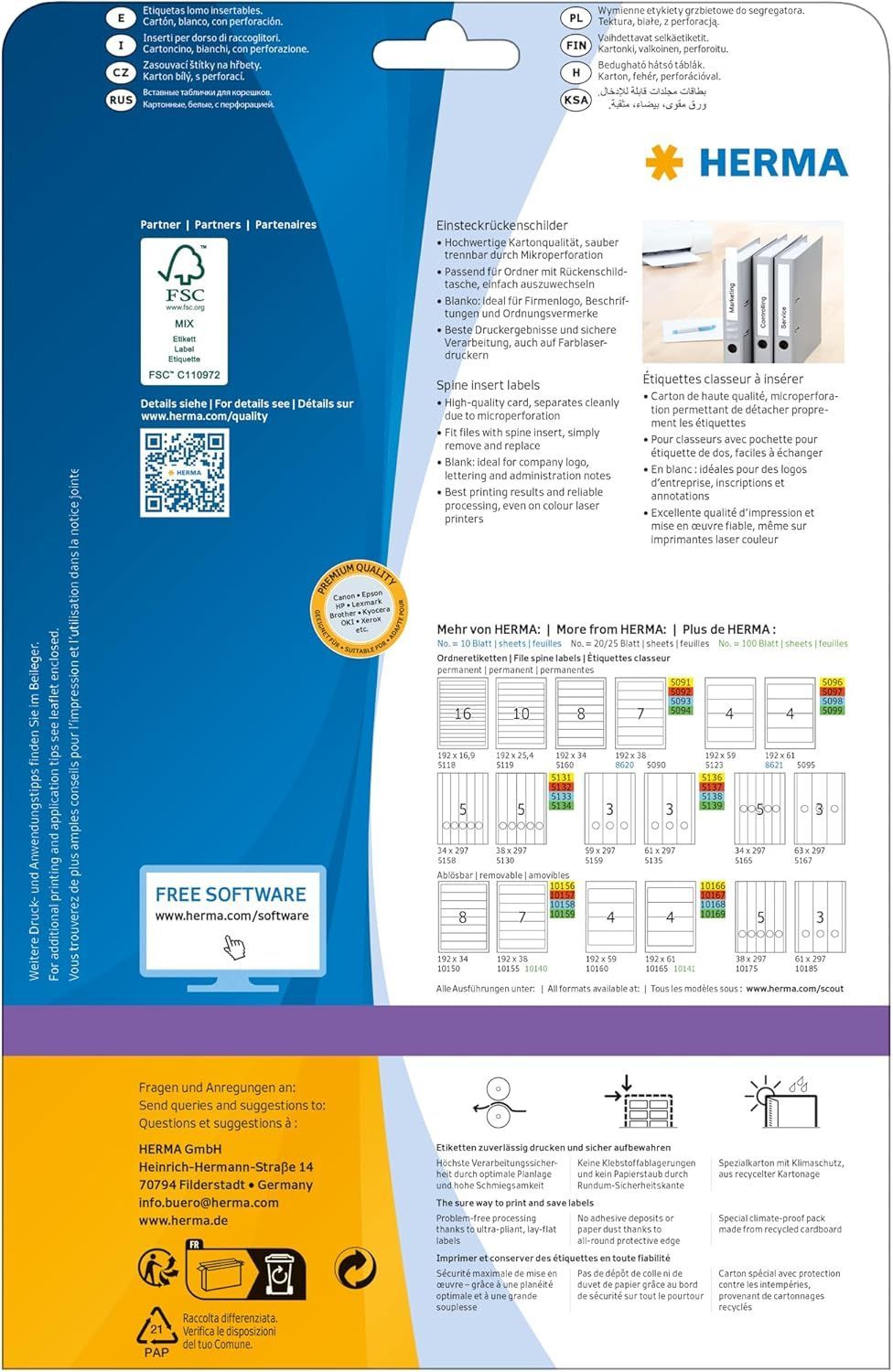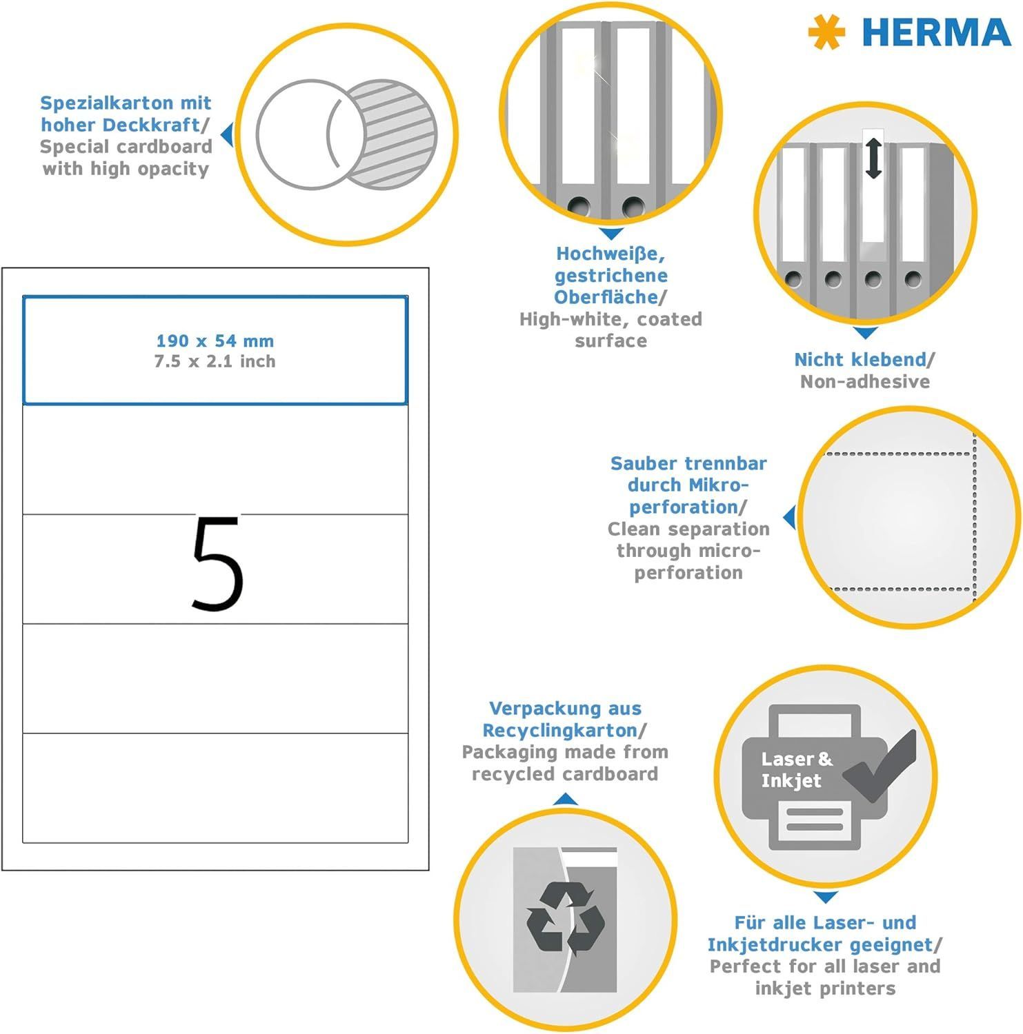 Herma HERMA 5032 Einsteckrückenschilder für Ordner perforiert kurz breit, 25 Blatt, 190 x 5