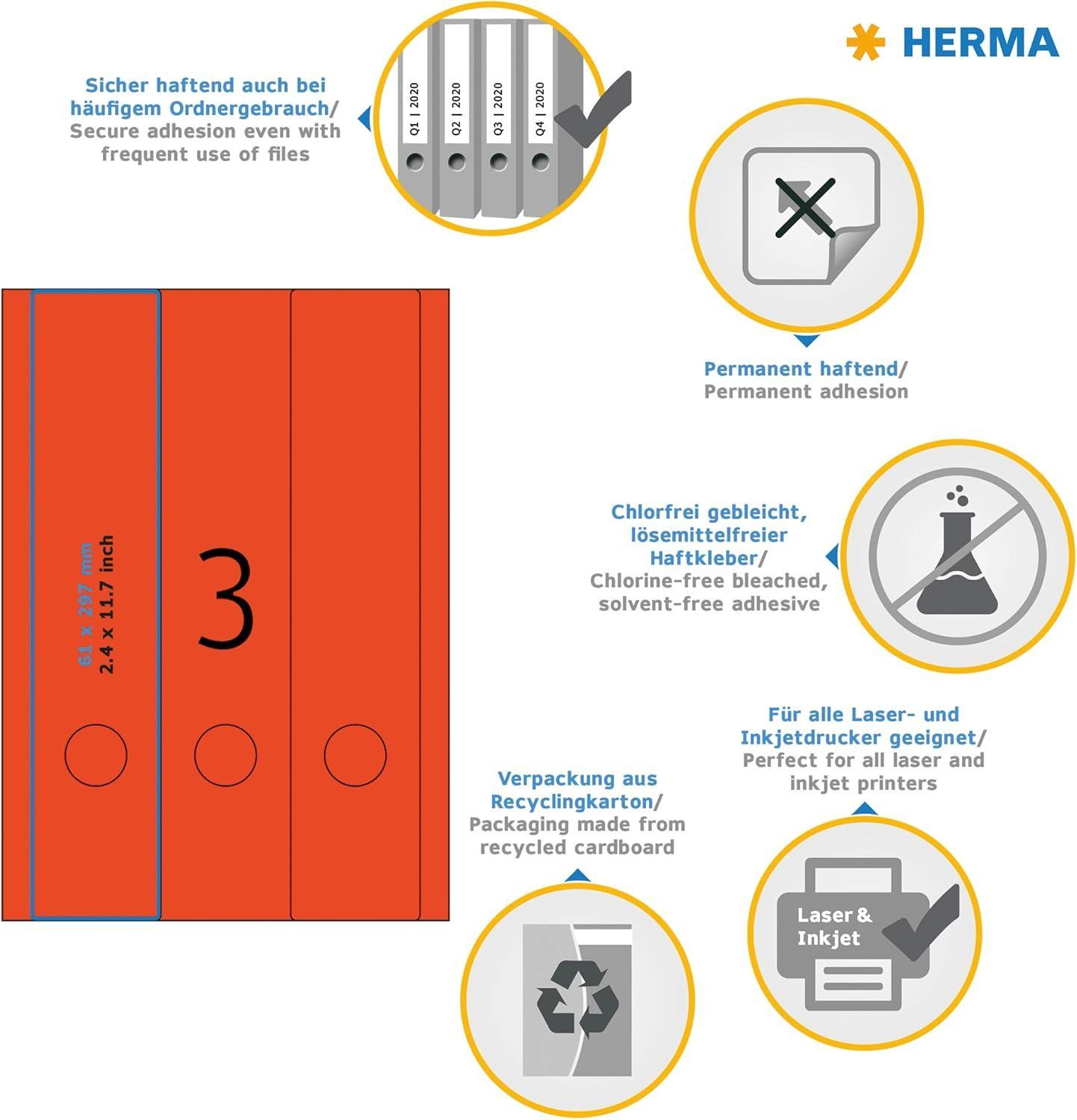 Herma HERMA 5137 Ordnerrücken Etiketten lang breit, 20 Blatt, 61 x 297 mm, 3 pro A4 Bogen,