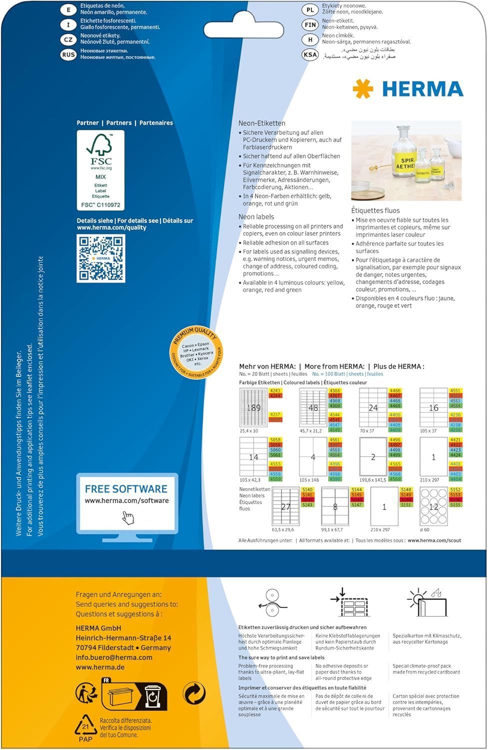 Herma HERMA 5148 Farbige Etiketten neon gelb, 20 Blatt, 210 x 297 mm, 1 pro A4 Bogen, 20 St