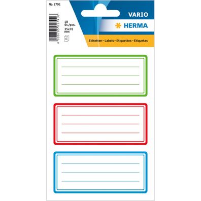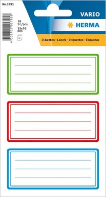 • HERMA 1791 1791 Schuletiketten tricolor, 18 Stück