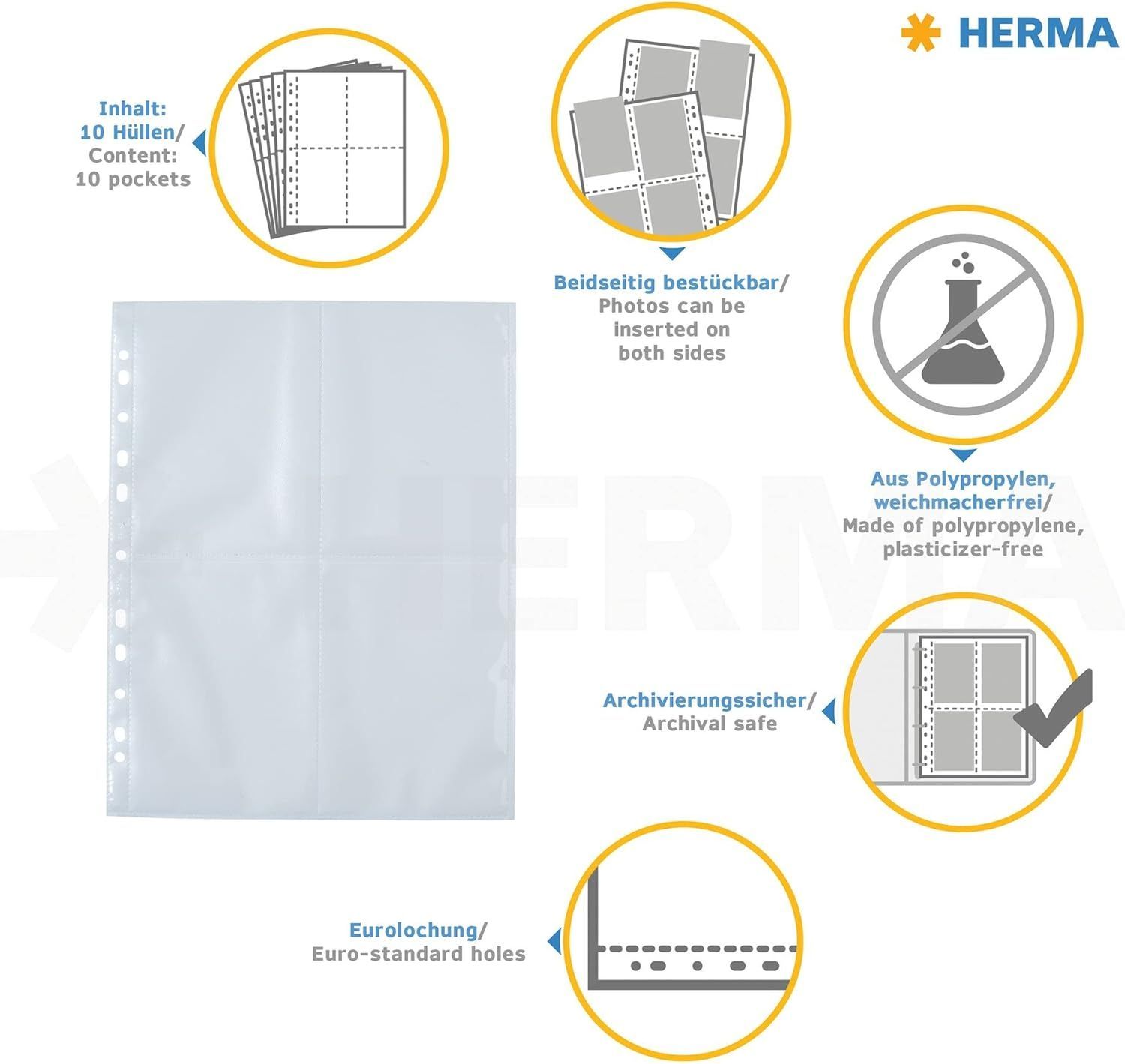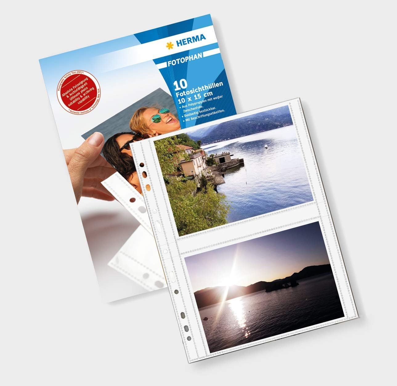Herma HERMA 7585 Fotohüllen für Ordner, 10 Stück, 10x15 cm, 4 Fächer geteilt, beidseitig be