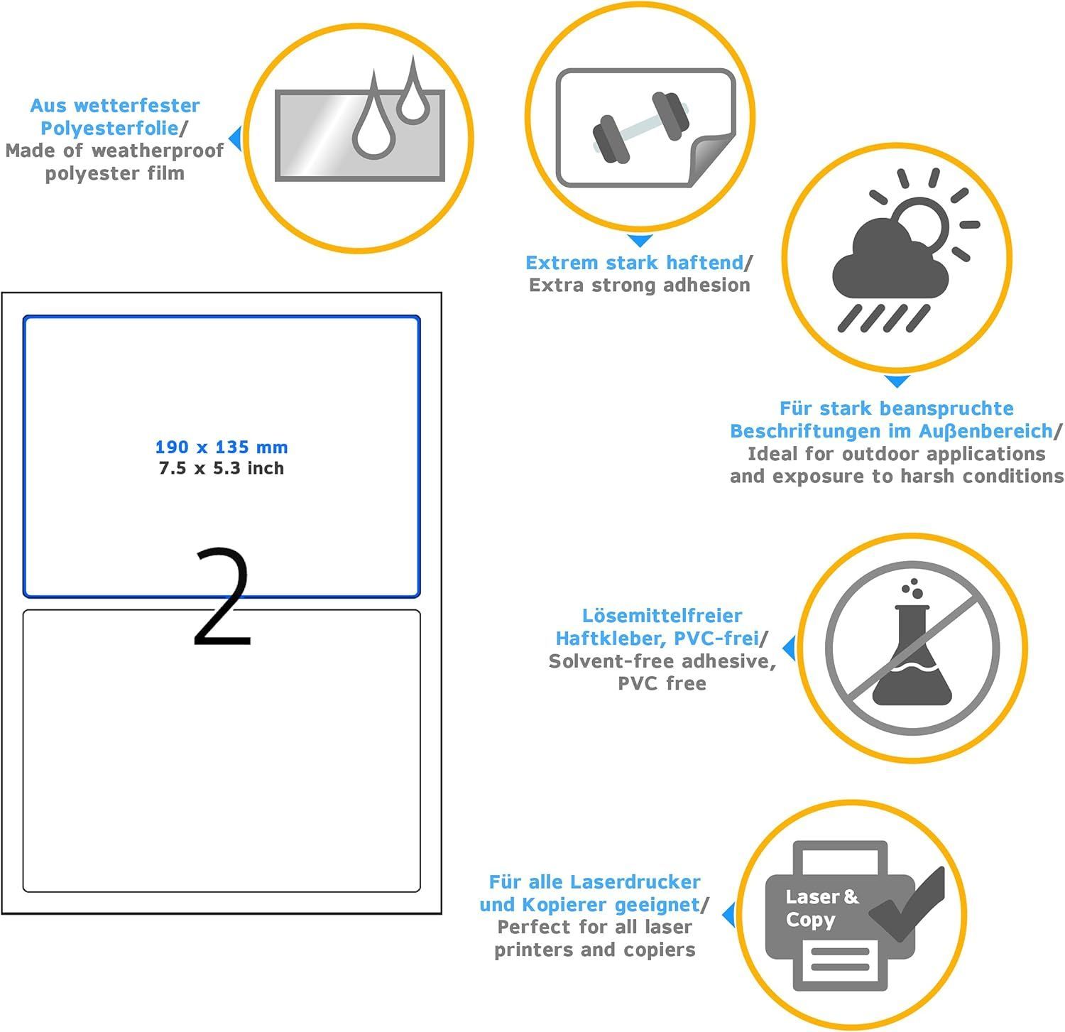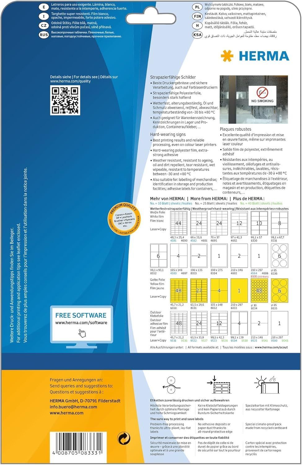 Herma HERMA 8333 Wetterfeste Folienetiketten, 25 Blatt, 190 x 135 mm, 2 pro A4 Bogen, 50 St
