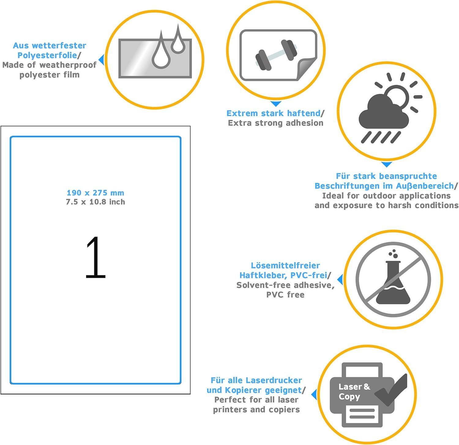 Herma HERMA 8334 Wetterfeste Folienetiketten, 25 Blatt, 190 x 275 mm, 1 pro A4 Bogen, 25 St