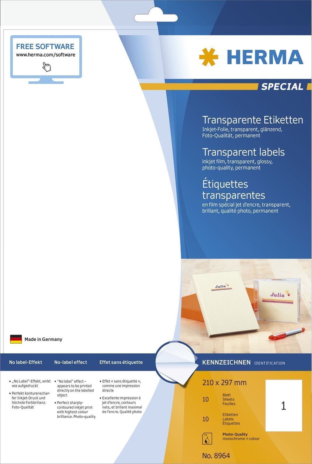 Herma Herma 8964 Herma Inkjet Etik. trans 210x297 10 Blatt DIN A4 10 Stück 8964