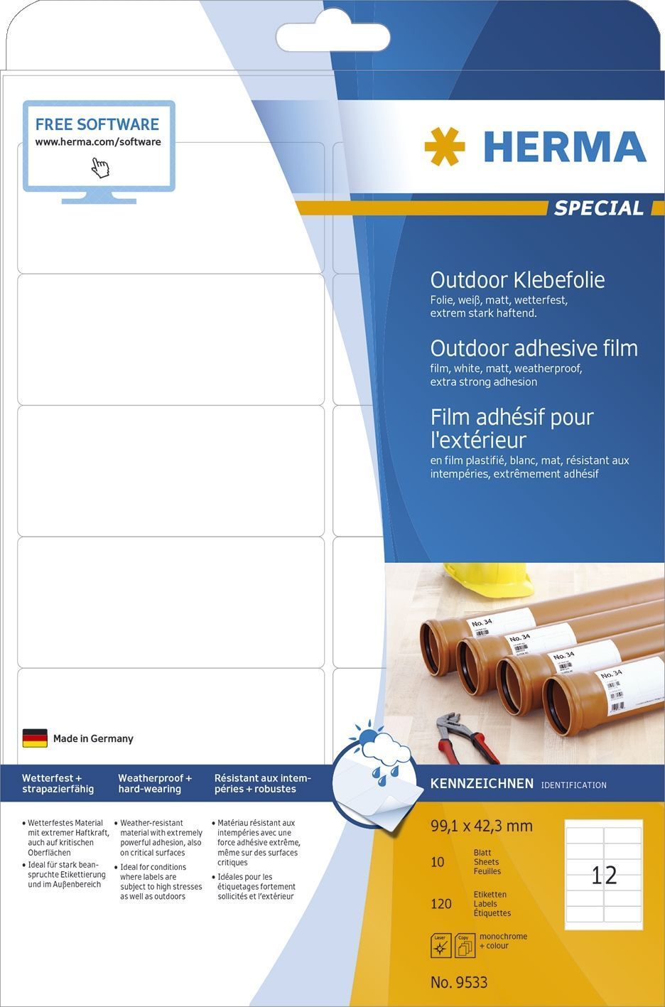Herma Herma 9533 9533 Etiketten A4 Outdoor Klebefolie weiß 99,1x42,3 mm Folie matt 120 St