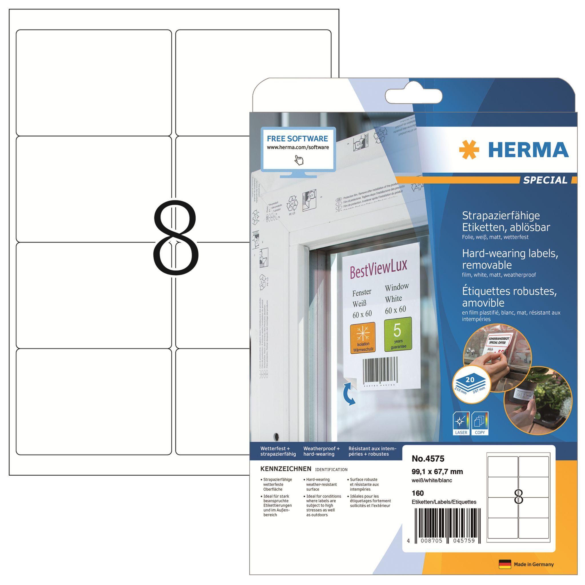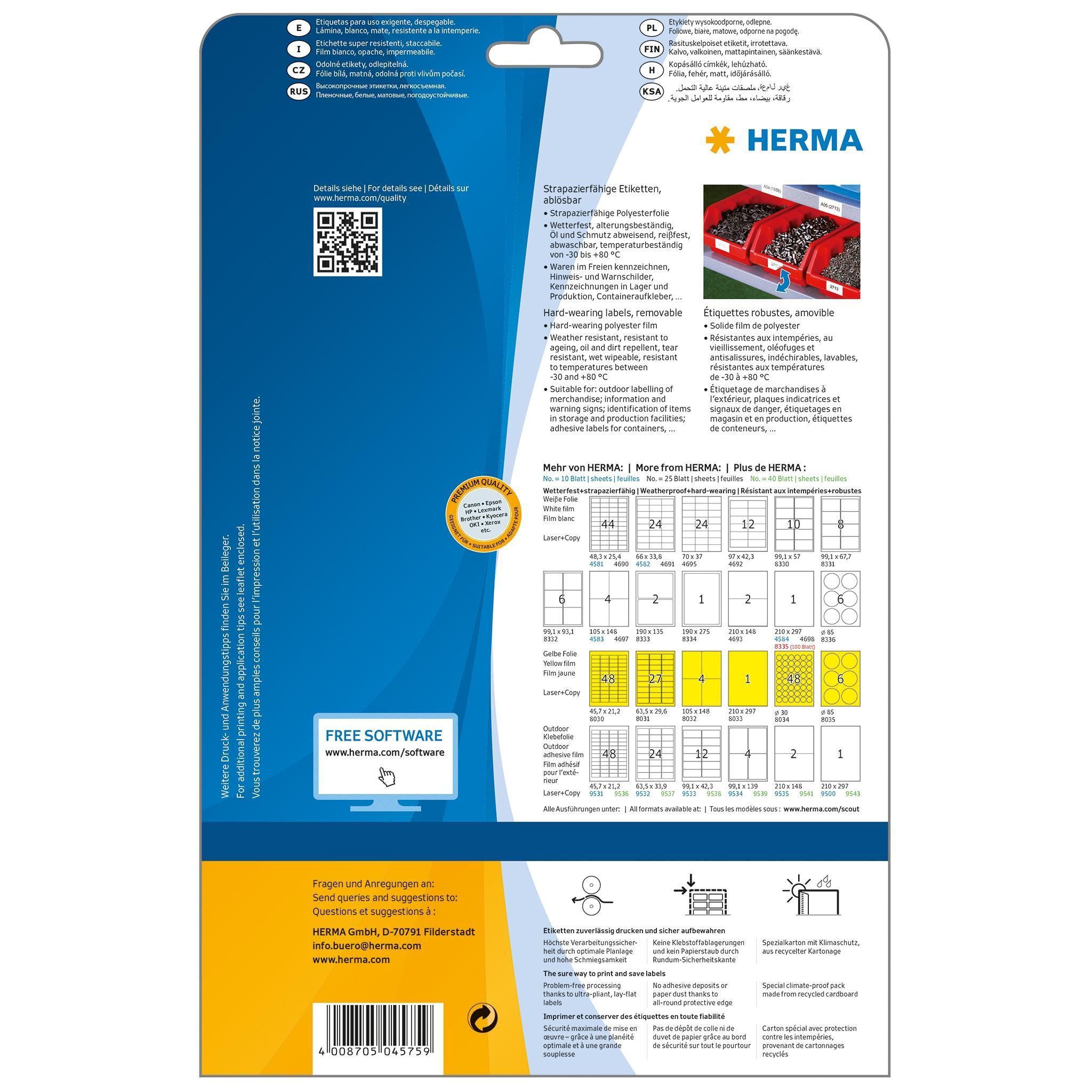 Herma Herma Etiketten ablösbar 99,1 x 67,7 mm Folie weiss 20 Bl 160 Etik