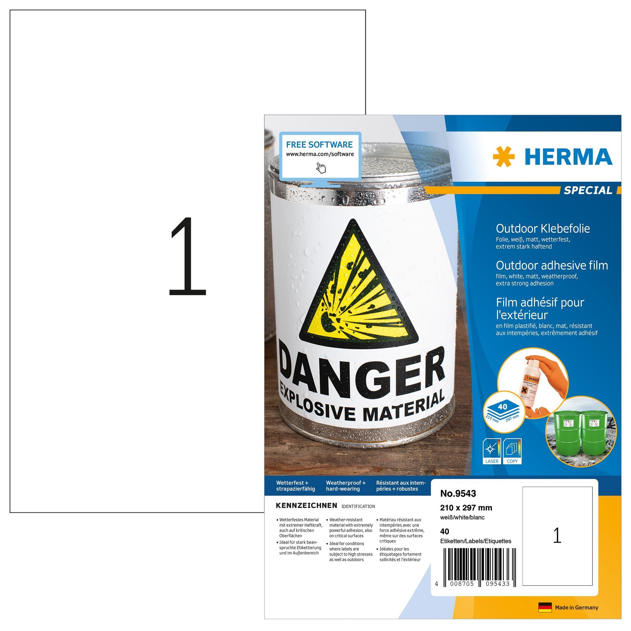 Herma Herma Etiketten für Outdoor stark haftend 210 x 297 mm weiss Folie wetterfest 40