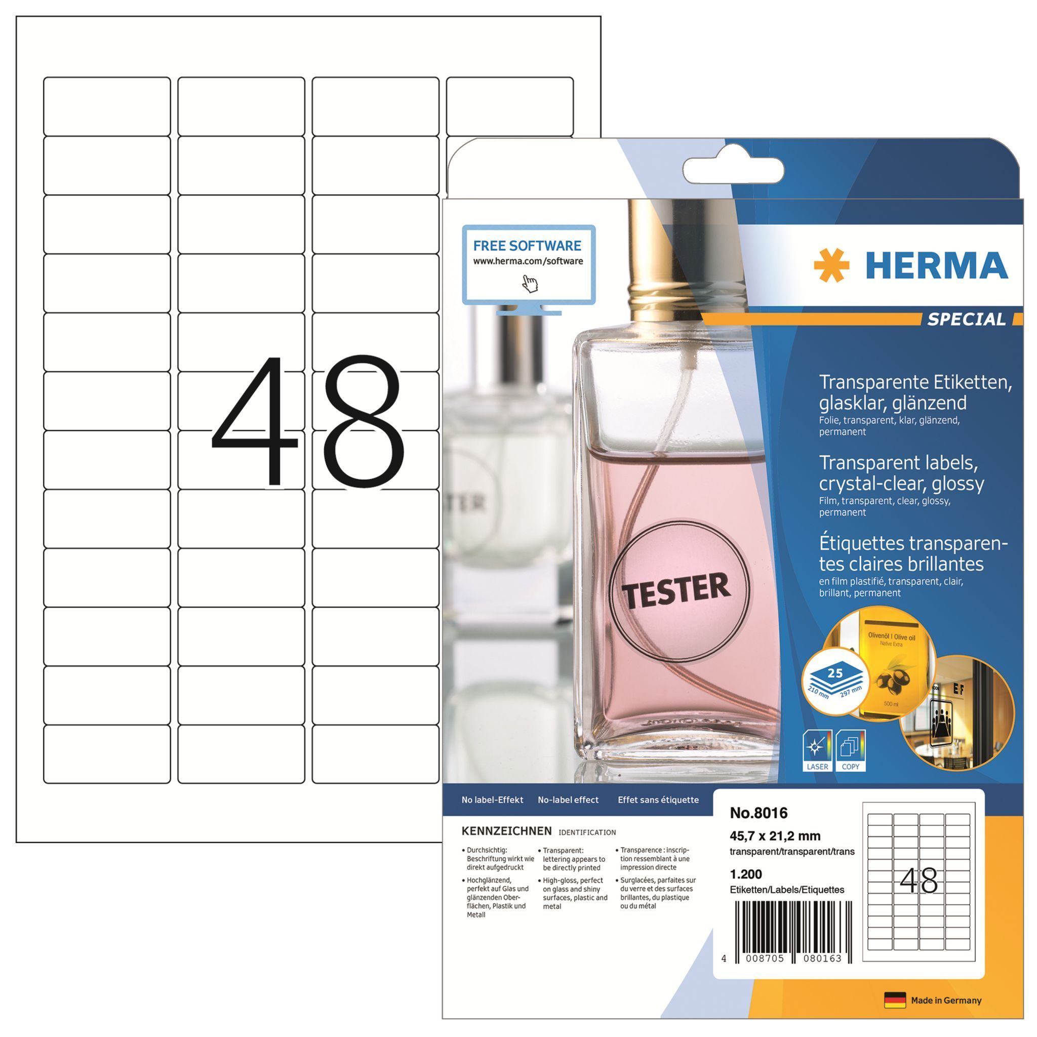 Herma Herma Etiketten permanent 45,7 x 21,2 mm Folie transp 25 Bl 1200 Etik
