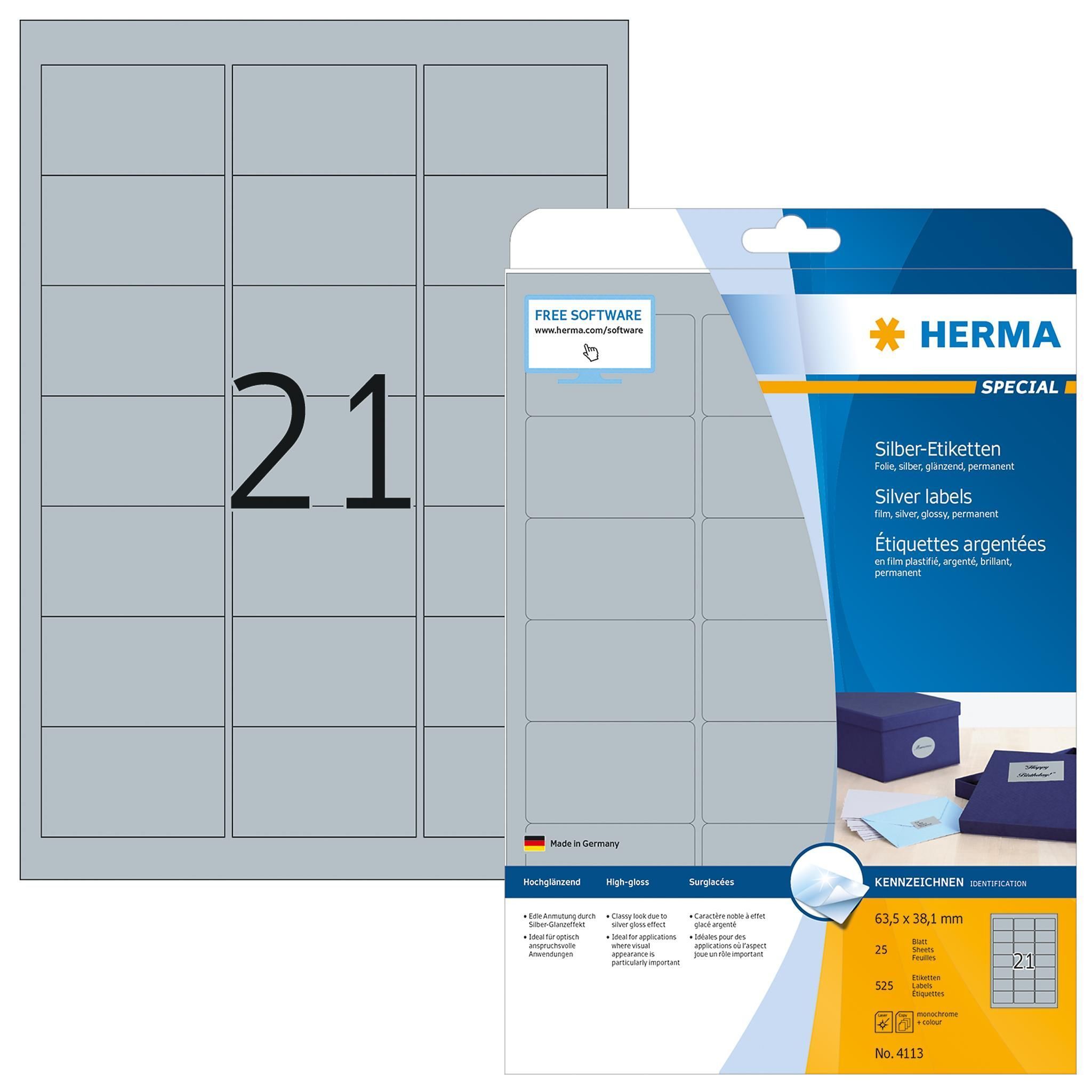 Herma Herma Etiketten permanent 63,5 x 38,1 mm Folie silber 25 Bl 675 Etik