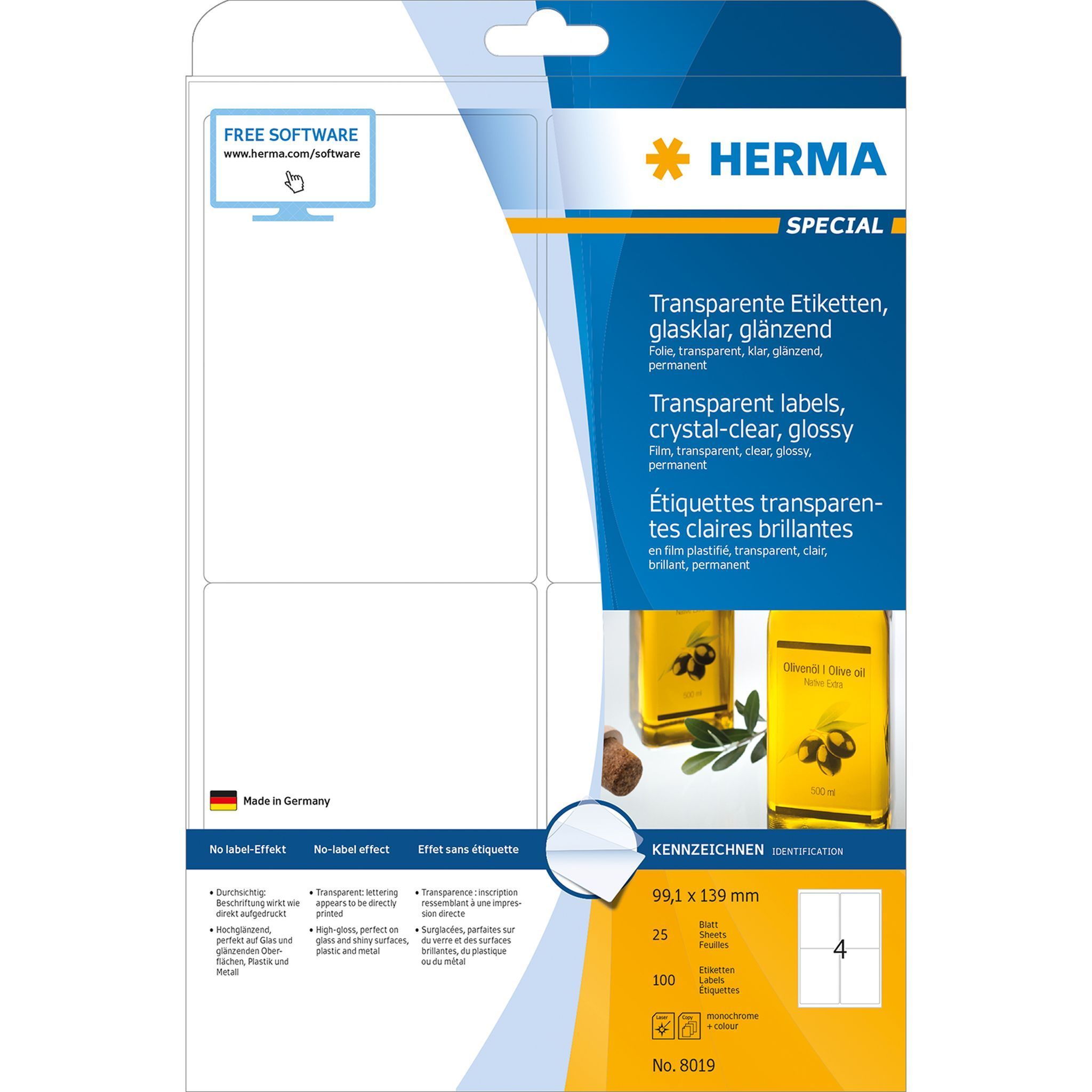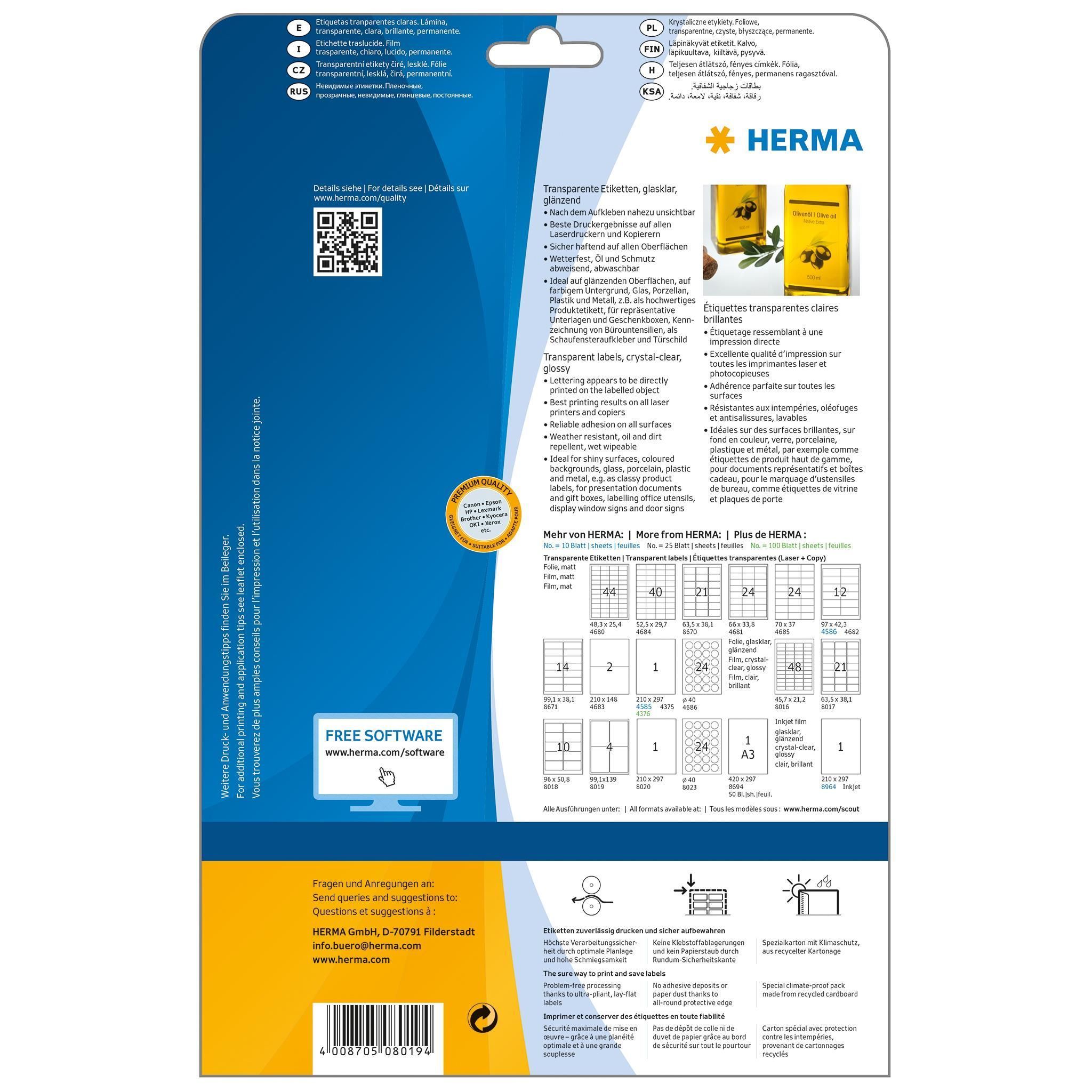 Herma Herma Etiketten permanent 99,1 x 139 mm Folie transp 25 Bl 100 Etik