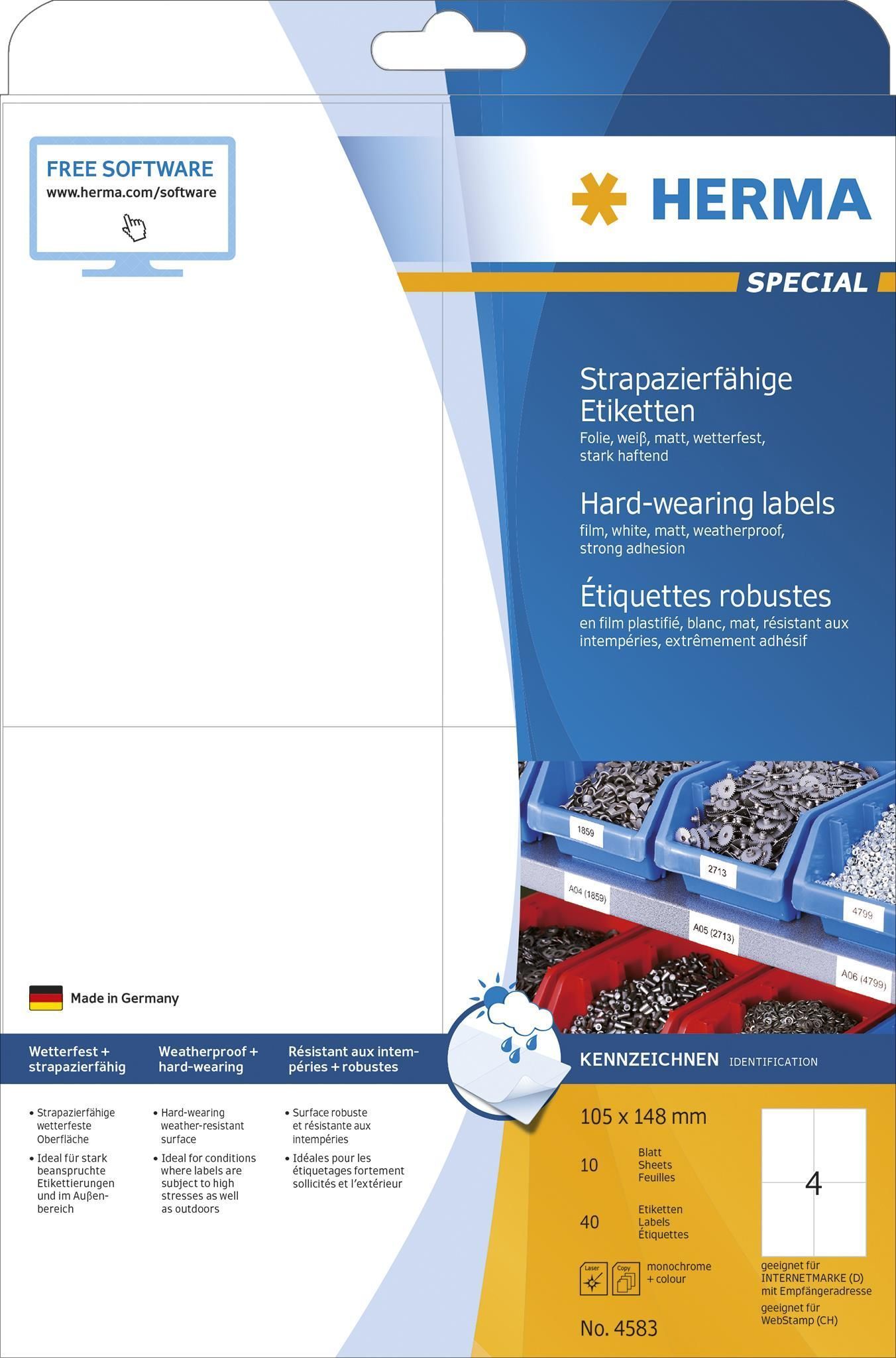 Herma Herma Etiketten stark haftend 105 x 148 mm Folie weiss 10 Bl 40 Etik