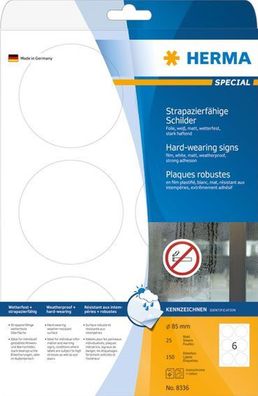 • HERMA Folien-Etiketten Special, Durchmesser: 85 mm, weiá