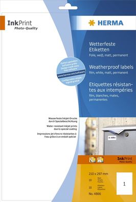 • Herma 4866 4866 Inkjet-Etiketten A4 weiß 210x297 mm wetterfest Folie matt 10 St