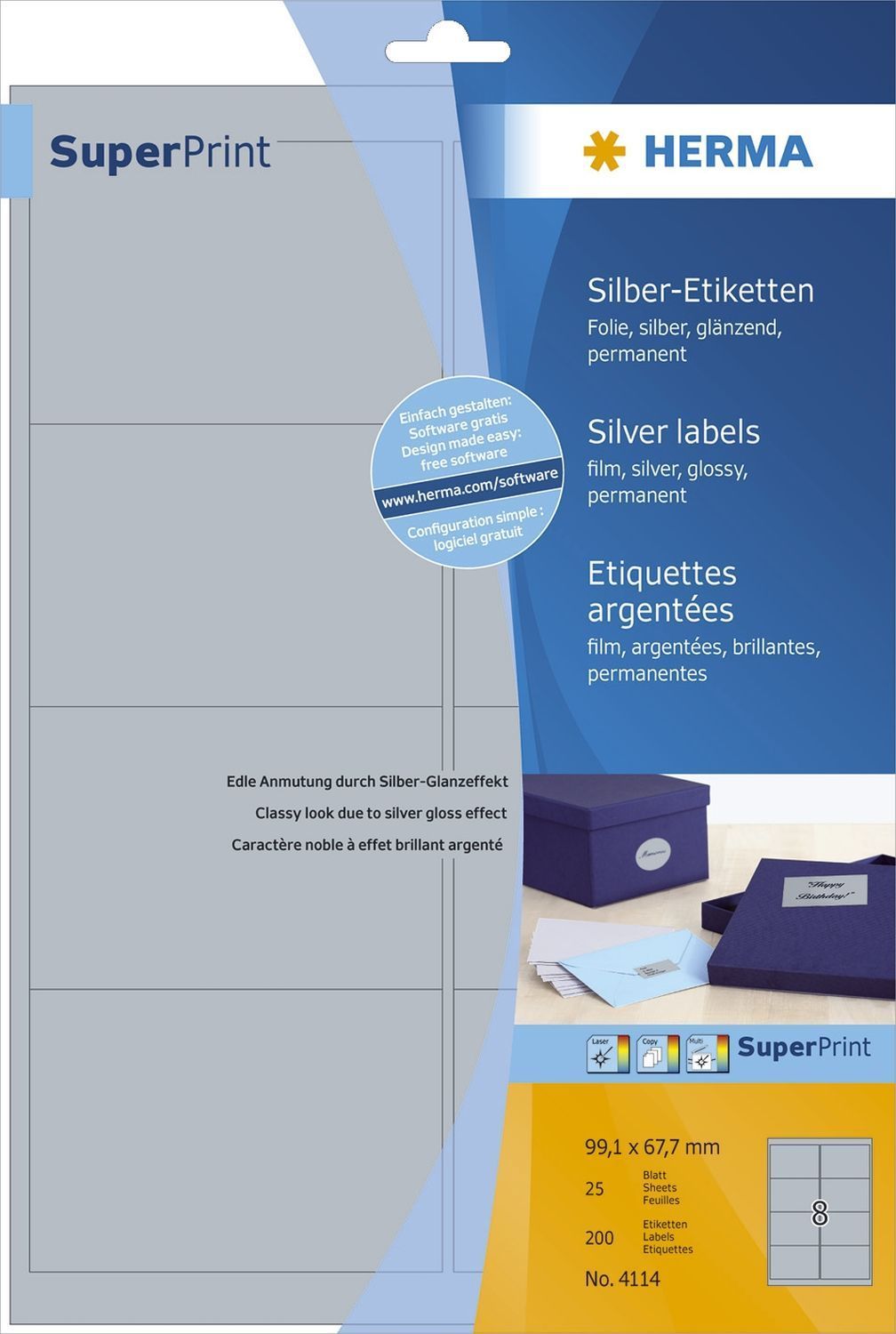 Herma HERMA Folien-Etiketten Special, 99,1 x 67,7 mm, silber
