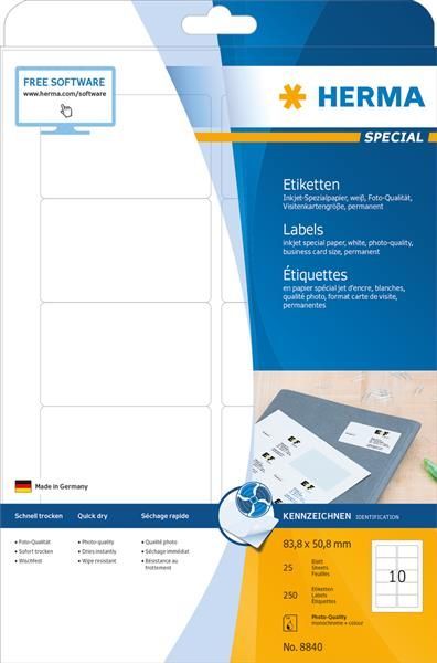 Herma HERMA Inkjet-Etiketten Special, 83,8 x 50,8 mm, weiá