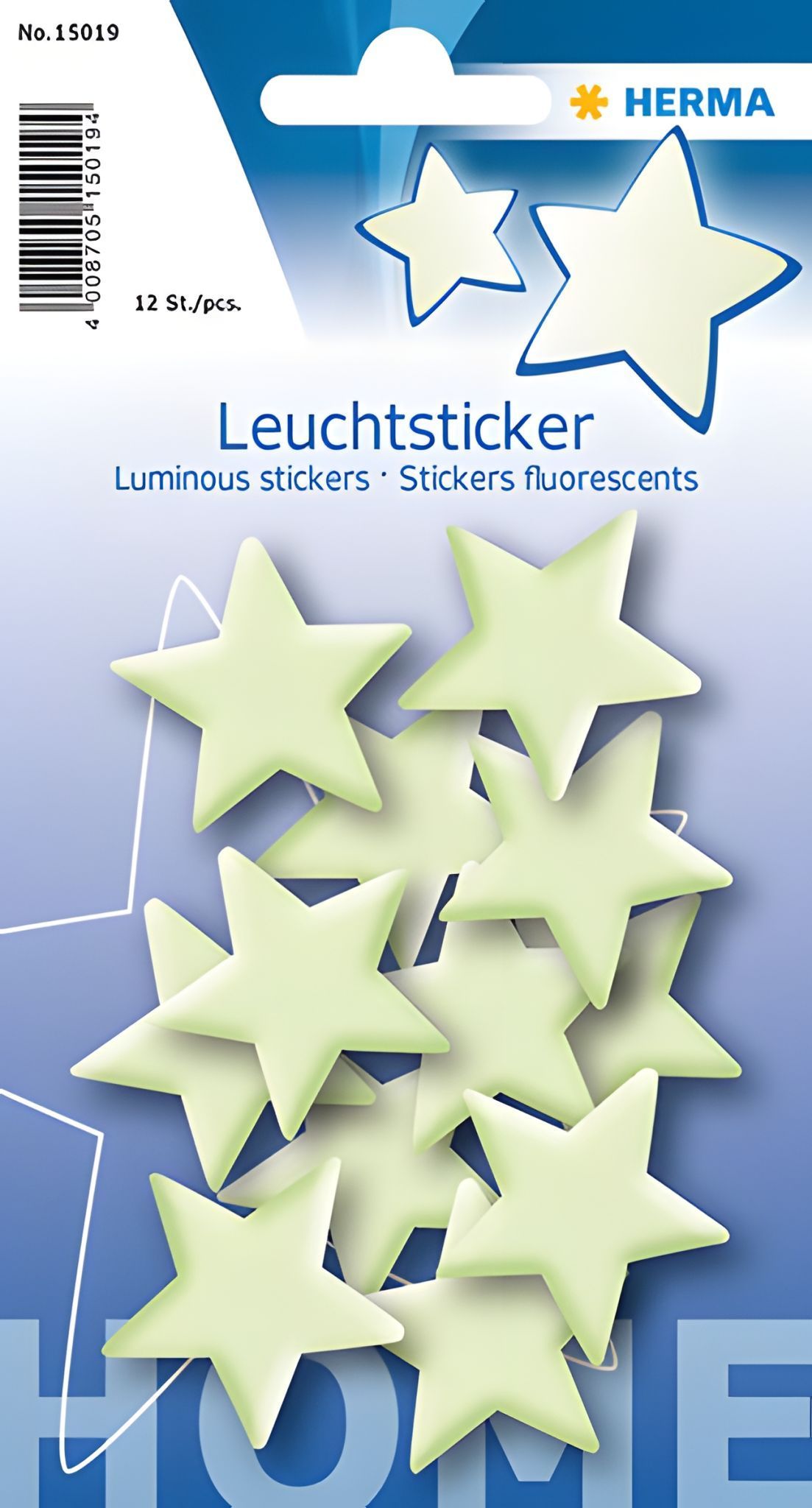 Herma Herma Leuchtsticker selbstklebend Kunststoff Sterne Mini 12 Stück