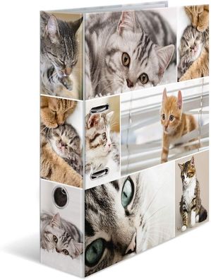 • HERMA Ordner A4 Katzen, 7 cm breit, Kinder Ringordner mit Tier Motiv, bunter Aktenord