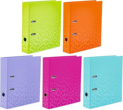 • HERMA 20129 Ordner A4 Farben Set, 5 Stück, 7 cm breit, Kinder Ringordner mit Muster,