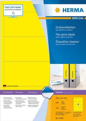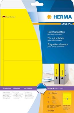 • HERMA Ordnerr?cken-Etiketten Special, 192 x 61 mm, gelb