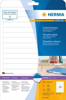 • HERMA Ordnerr?cken-Etiketten Special, 192 x 16,9 mm, weiá