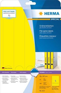 • HERMA Ordnerr?cken-Etiketten Special, 38 x 297 mm, gelb
