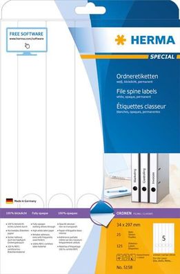 • HERMA Ordnerr?cken-Etiketten Special, 297,0 x 34,0 mm, weiá