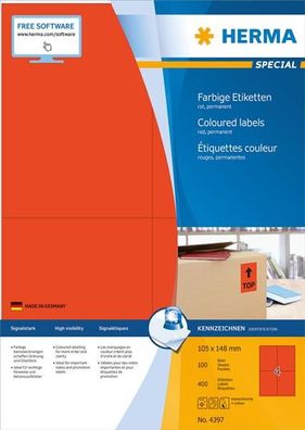• HERMA 5097 Ordnerr?ücken-Etiketten Special, 192 x 61 mm, rot