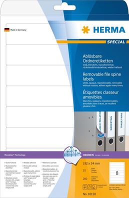 • HERMA Ordnerr?cken-Etiketten Special, 192 x 25,4 mm, weiá